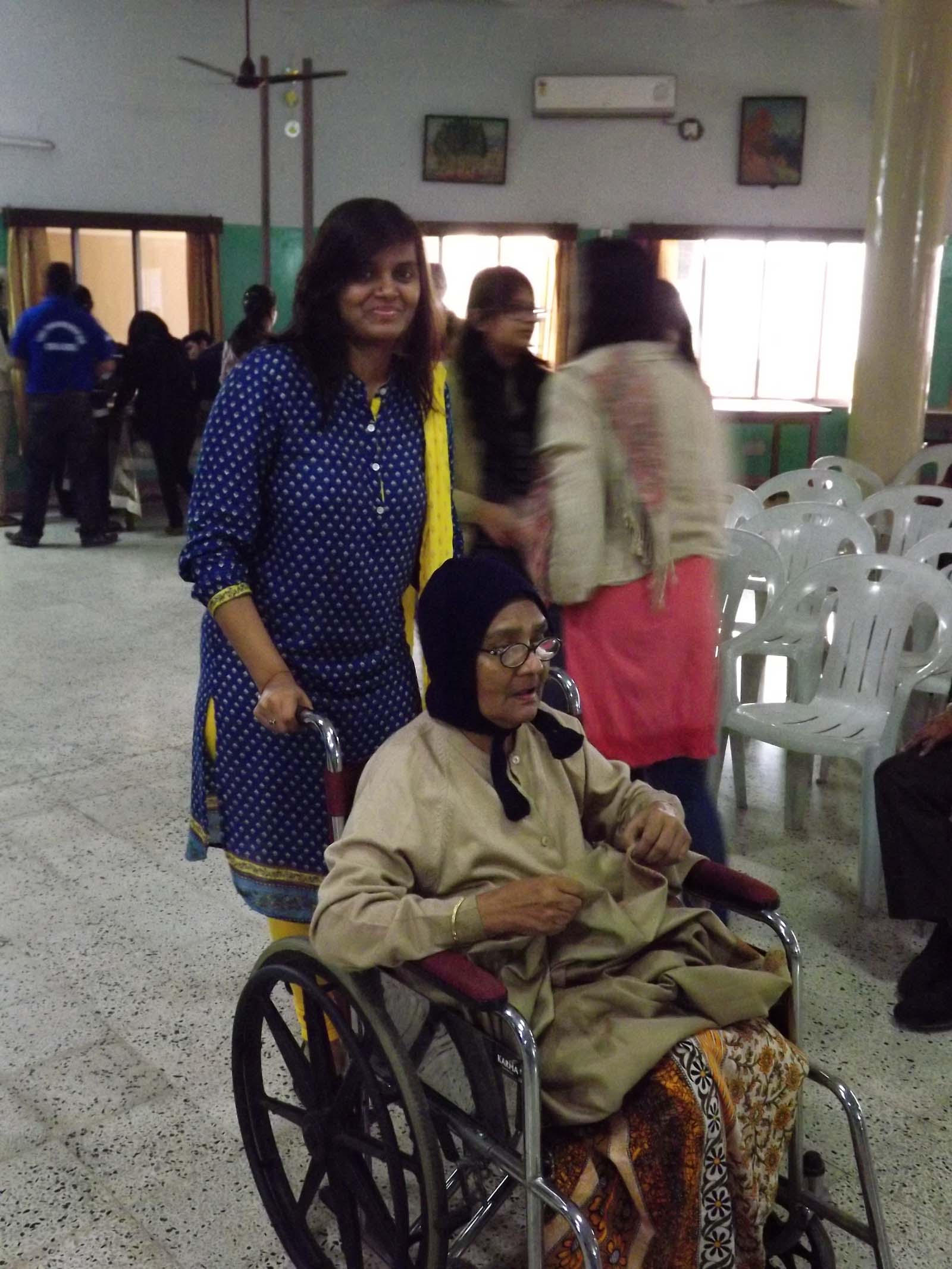 The oldest member at the home was a lady, 97 years old. The students gifted a fruit basket to the old age home.
