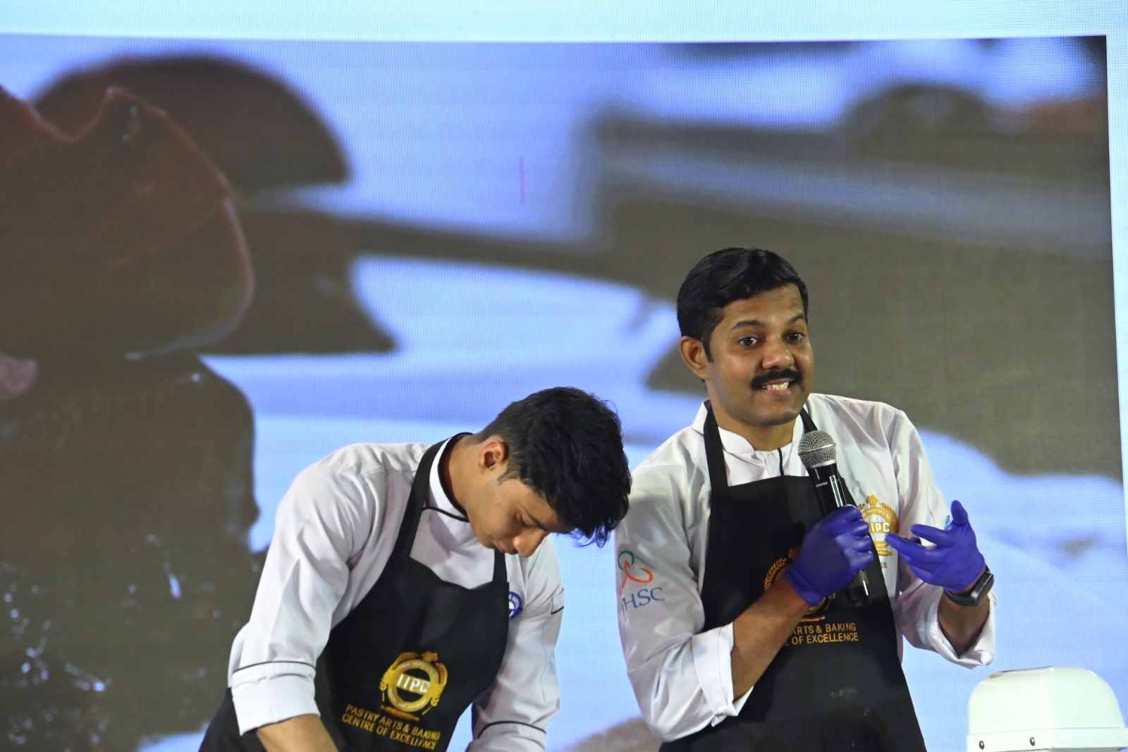 On the 14th of February, 2025, a Bakery and Patisserie Workshop was conducted in the Concept Hall of The Bhawanipur Education Society College from 10:00 A.M. onwards, led by internationally trained chefs of the IIHM’s Institute of Pastry and Culinary (IPC). This workshop featured the preparation of two delightful savoury items along with two exquisite desserts, showcasing techniques, and skills that undoubtedly captivated and inspired all. The desserts were prepared by Chef Arun Vijaya Kumar, who has 15 years of experience as a Pastry Chef with assistance from Chef Adil, a student chef currently studying at IIHM IPC.