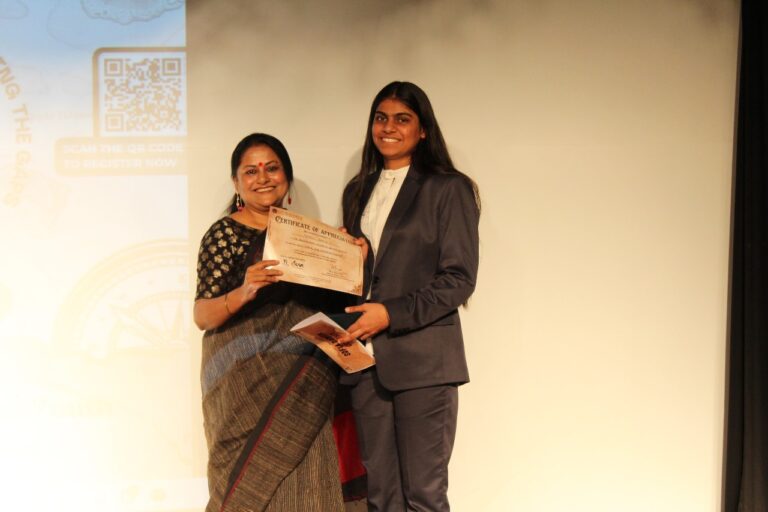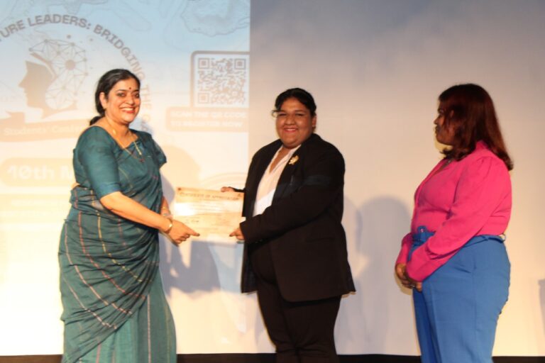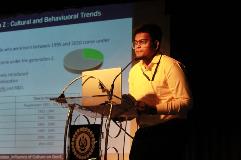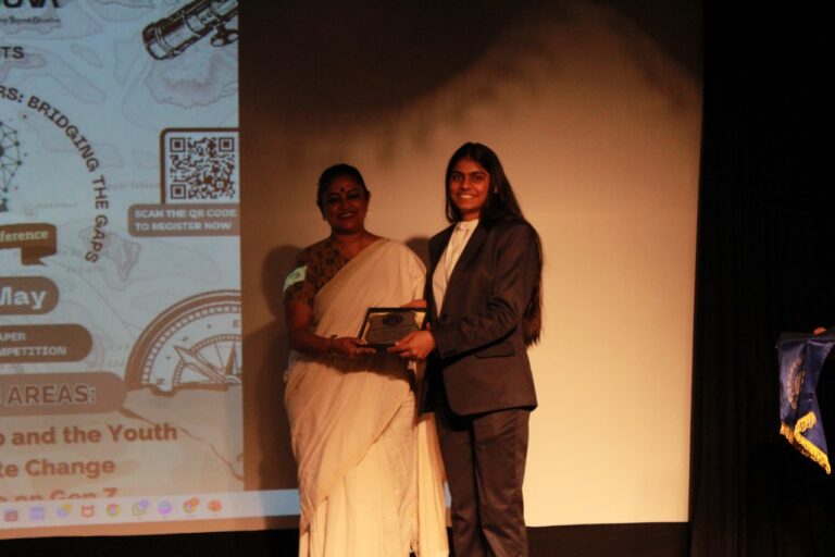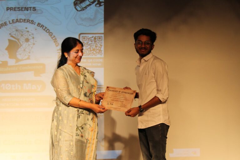 At 5:00 P.M., the conference reached its conclusion through the award distribution ceremony where prizes were handed over to the best presenters, best papers as well as a runner-up. For the theme of “Entrepreneurship: A Pathway for Advancement of Young Minds”; the best presenter was Arka Das for his paper on “Youth and Business: What Lies Ahead for a Viksit Bharat” while Nomik Tantia’s paper on “A Comprehensive Analysis On The Boom Of Entrepreneurship In India” received the best paper award. The theme of “Impact of Culture on GenZ” had Stuti Arora and Barsha Saha as the best presenters for their paper “Love’s Labour Lost: Gen Z’s Crusade to Normalise LGBTQIA+ in Indian Culture”; and the best paper was “GenZ Unbound By Old Standards” by Shaika Guha Majumder. The third and final theme of “Climate Change and Youth” had Abhinav Das as the best presenter for his paper “Youth and Climate Change” while Abhishek Shaw became the runner-up in the same category for his paper “How SDPs and Climate Change are Interrelated with special emphasis on prospects of marine pollution”. Lastly, the best paper award went to Akshara Venkateshwaram for her paper “Future on Fire: Perceptions of Indian Youth on the Frontline of Climate Change.”