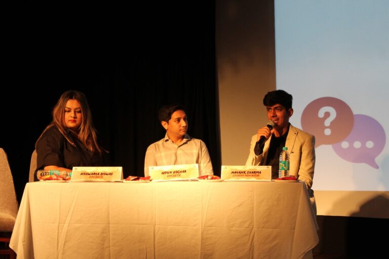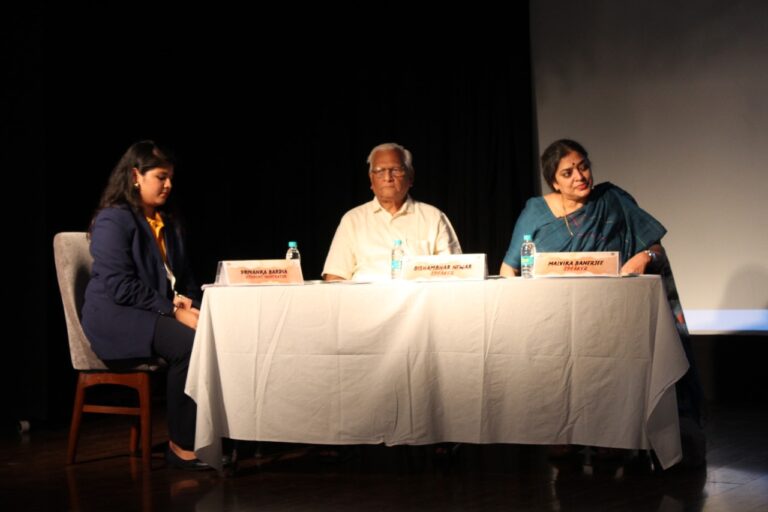 The last Paper Presentation for the day began at 3:30 P.M. on the theme “Youth and Climate Change ‘’ which had 5 participating teams and was judged by Ms. Kathakali Bandyopadhyay. The presenters highlighted the different aspects of climate change in the 5 sub-topics they presented, namely “Future on Fire: Perceptions of Indian Youth on the Frontline of Climate Change”; “How SDPs and Climate Change are interrelated with special emphasis on prospects of marine Pollution”; “Youth and Climate Change”; “Climate Change and Youth”; and “Youth skirmishing climate emergency”. The last session, Technical Session 3, commenced after the paper presentations with the theme being “Impact of Culture on GenZ” with speakers, Ms Malavika Banerjee, an entrepreneur working with art, sports marketing and handloom retail and Mr Bishambar Newar, an accomplished journalist having held notable positions as a member of the Press Council of India and General Secretary of the All India Newspaper Editors Conference. Ms Malavika Banerjee set up the Kolkata Literary Meet which has been a major event in the city for the last 13 years that welcomed esteemed guests and speakers for discussions. She is also the Director at Gameplan Sports which is one of India’s oldest sports marketing companies and is a Partner at Byloom, a store that celebrates handloom and handmade goods. Mr. Bishambar Newar has made significant contributions including serving as Chief Editor of Chhapte Chhapte Hindi Daily and Director of Taaza TV as well as serving in the Central Press Accreditation Committee, PIB, and Ministry of Information and Broadcasting for 2 terms. Beyond his professional roles, he actively engages in social activities, holding positions in organisations like the Bharat Relief Society and the West Bengal Provincial Marwari Federation. His contributions to the media field have been recognised with prestigious awards including the Indira Gandhi Lifetime Achievement Award, Mother Teresa International Award, Banga Seva Samman, SAMLA Harmony Award and the Prajapati BrahmaKumaris Iswariya V.V. The student moderator for the Panel Discussion was Priyanka Bardia, a 2nd Year B.Sc Economics student who is an avid bibliophile and public speaker. The session spoke about newspapers and their contribution to the cultural changes in the world. The panellists explained how reading the newspaper daily helps us to be well-known cultured people while also making us informed individuals rather than just aware individuals and that there is no alternative to a newspaper. When questioned, the panellists spoke about how individuals today lack curiosity which is the latest trend seen among young minds today. Mr Newar also suggested the youth open their windows to all sorts of information about the world. Technical session 3 concluded with Prof. Chaturvedi felicitating the speakers of the session and thanking them for their time.