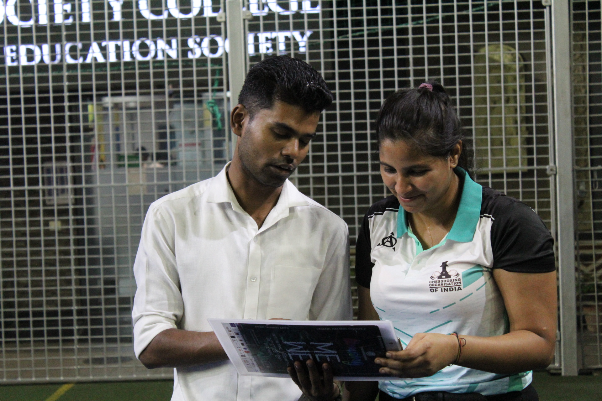 By the end of the first leg of Day 2, the players who fought their way to the semi-finals were determined. These players displayed grace and determination, earning their place in the next stage of the competition. The first event of the day concluded at 2 P.M. with great anticipation for the upcoming semi-final matches, as the excitement continued to build. The second half of the day started after an hour’s break at 3 P.M. with the first round of the men’s doubles category. With a total of 52 doubles pairs and 104 participants, the matches started sharply at 3:30 P.M. The atmosphere was charged as players warmed up and practised while waiting for their turn. Spectators filled the college turf and even watched from the college building, creating a lively environment. By the end of Day 2 at 7 P.M., the event successfully had 27 pairs moving on to the next qualifying knockout round after a charged-up first round.
