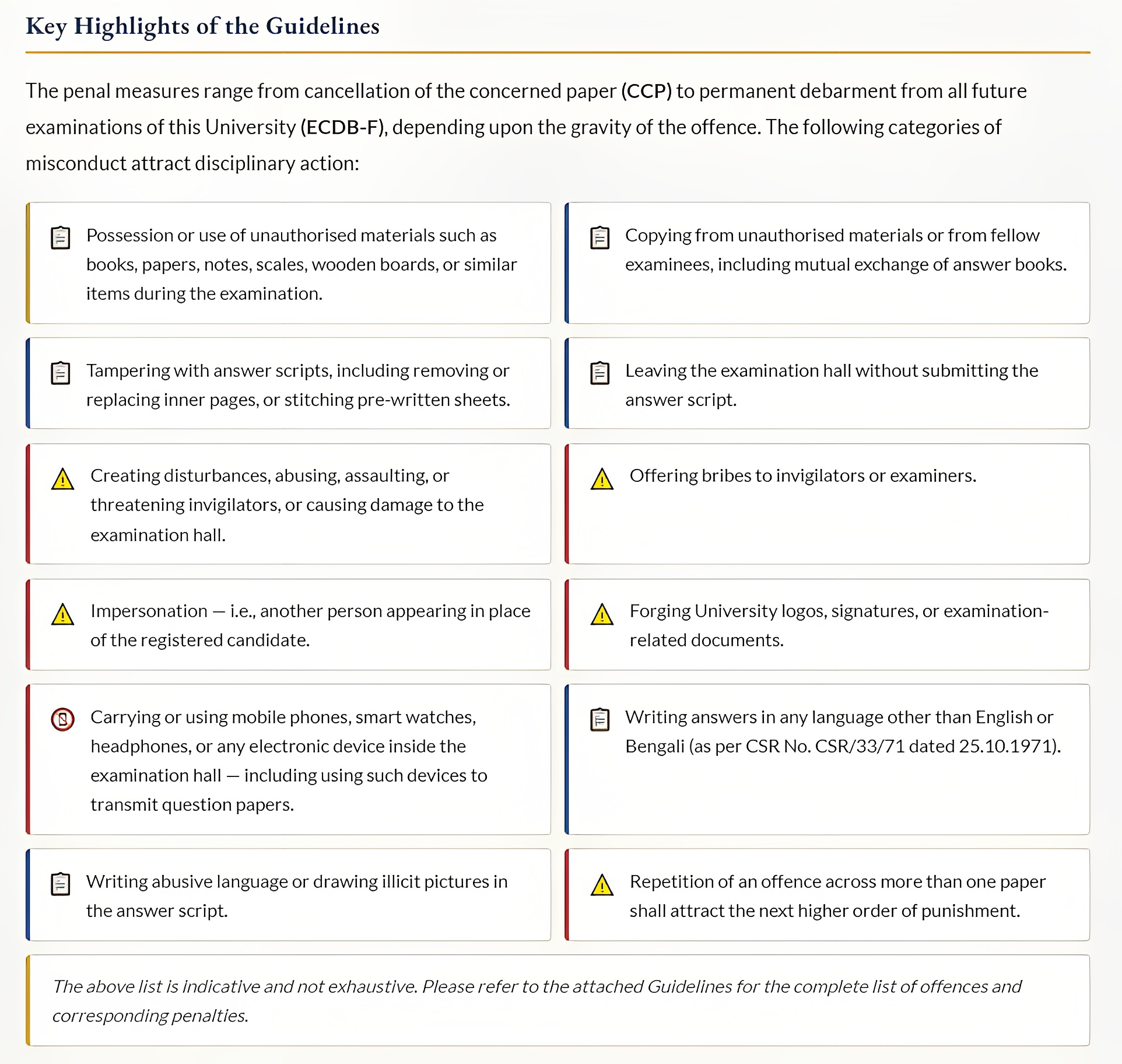 Click here for Calcutta University Guidelines on Examination Discipline (IC)