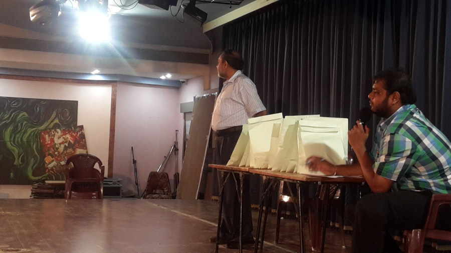 They made their way through the stairs to the fire exit but found nothing until they searched the green room where they found “ WB 06F 665……..”. Our clue finders where smart enough to understand that this was a car number. This also meant that the murderer came by a car which was still there. Detective Akhil found the car where they got their next clue “Go back to where it all started”. It all had started from the Hell which meant that their next clue was somewhere near that. Going back to where it all started was a difficult journey so one of our clue finders entered the canteen for some snacks while the others continued.