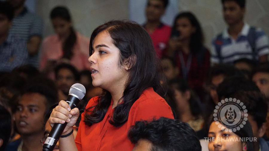 Prof Dilip Shah, the Dean of student Affairs of BESC welcomed the honoured guest to the college with a brief speech in which he filled the audience with a backgrounder on Chetan Bhagat, before leading the speaker to the podium.