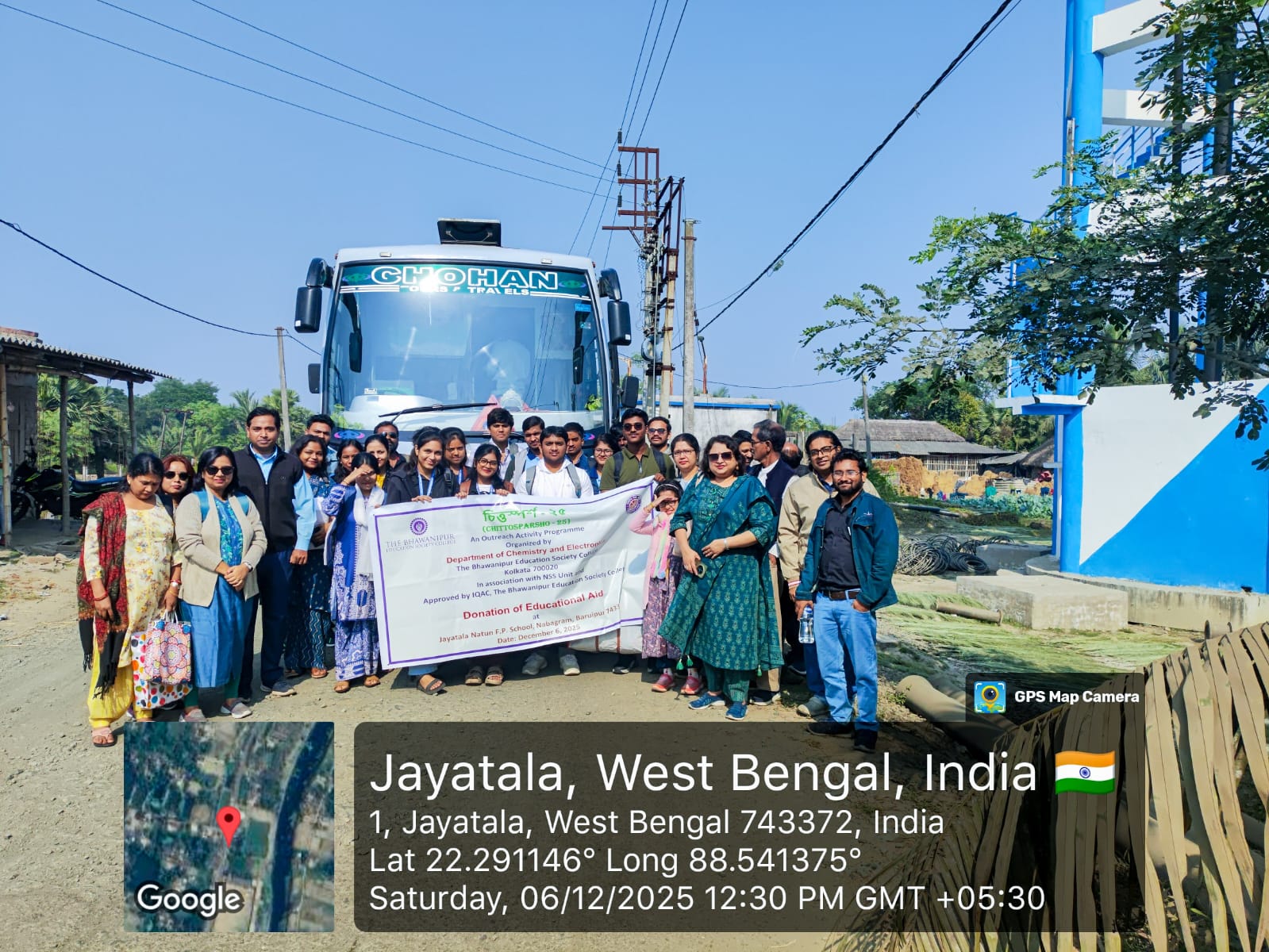 Name of the Activity: Chittosparsho-25 Category of the Activity: Outreach Programme Organising unit: Departments of Chemistry and Electronics in collaboration with NSS Date of the activity: 06.12.2025 Time: 9 AM – 5 PM No. of Participants: 40 (students: 21; faculty members: 10; lab staff: 4; office staff: 5) No. of Beneficiaries: 140+ rural primary students of Jayatala Natun F.P. School, Nabagram, Baruipur, West Bengal: 743372