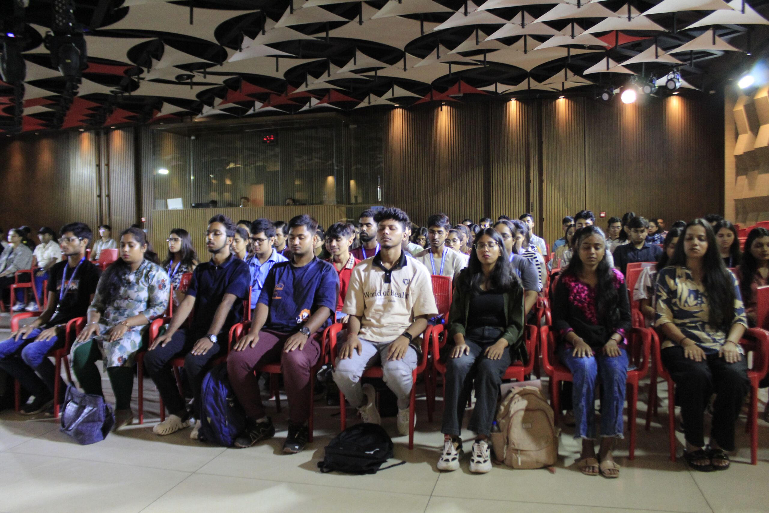 Distinguished members of Atmadhruti were also present. As a life-planning organisation, they are committed to helping people achieve balance across their personal and professional lives. After the speech, the keynote speaker, Mr. Anindo Ghosh, began interacting with the students. He engaged them in an activity involving anonymous messages about fear, written on unnamed chits. This was followed by a guided meditation, where everyone closed their eyes and allowed their thoughts to flow freely.