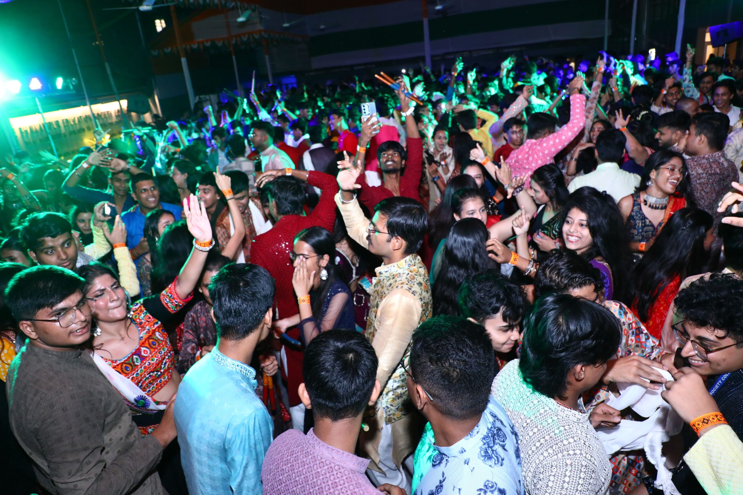 As the night unfolded, an open Dandiya round was announced, inviting students, faculty, and guests alike to take the floor with their dandiya sticks. Each round brought with it laughter, bonding, and boundless energy — truly reflecting the inclusive essence of Navratri. The vibrant dances and spontaneous participation exemplified the college’s ability to bring together people from all walks of life in the spirit of celebration.