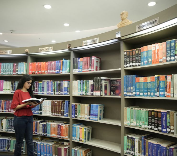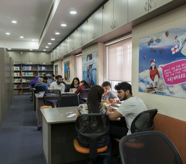 A 5000 sq ft library filled with books, journals, research material, and quiet study zones.