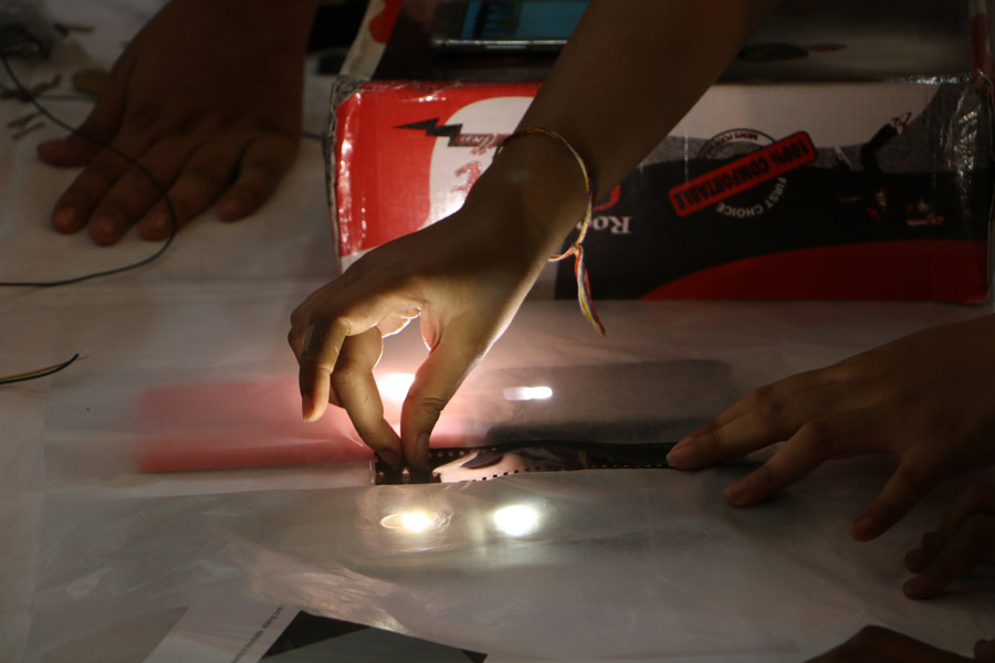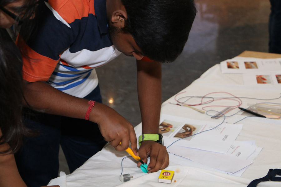 The event covered making of the six projects which were the Virtual Reality glasses, 3D holographic projector, trip wire alarm, USB fan, Reel converter, & the Popcorn Machine. There were 42 registrants in total so we decided to group them as six per group eventually making seven groups which were Team Radon(mentored by Trishala Mitra), Titanium(Karan Mundhra), Uranium(Neha Shaw), Xenon(Keshav Khandelwal), Helium(Shibhanwita Roy) , Neon(Sunny kr. Singh), Argon(Trishita Das). The event was superbly hosted and lead by Rahul Agarwal. The time allotted for making the gadgets was 1 hour, manuals for each of the projects were given. When the clock started ticking, the participants rushed to the inventory collecting the required materials for making the gadgets. The event was full of pressure, excitement and even a bit of shock for the mentors. The cameramen covering the event were Anirban Roy and Indranil Mukherjee. They were also in charge of the logistics of the event. At the end, the judges(Rahul Agarwal & Rahul Agrawal) went to each team and inspected the projects and declared Team Radon as the winner and Team Titanium as the runners-up. Later the judges also explained how to make each project and where they can improve themselves. The whole event was an idea of our Dean, Prof. Dilip Shah and was executed flawlessly under the guidance of Prof.Diyvesh Shah.