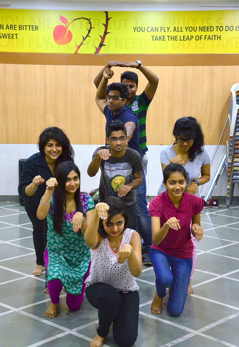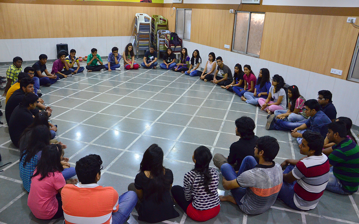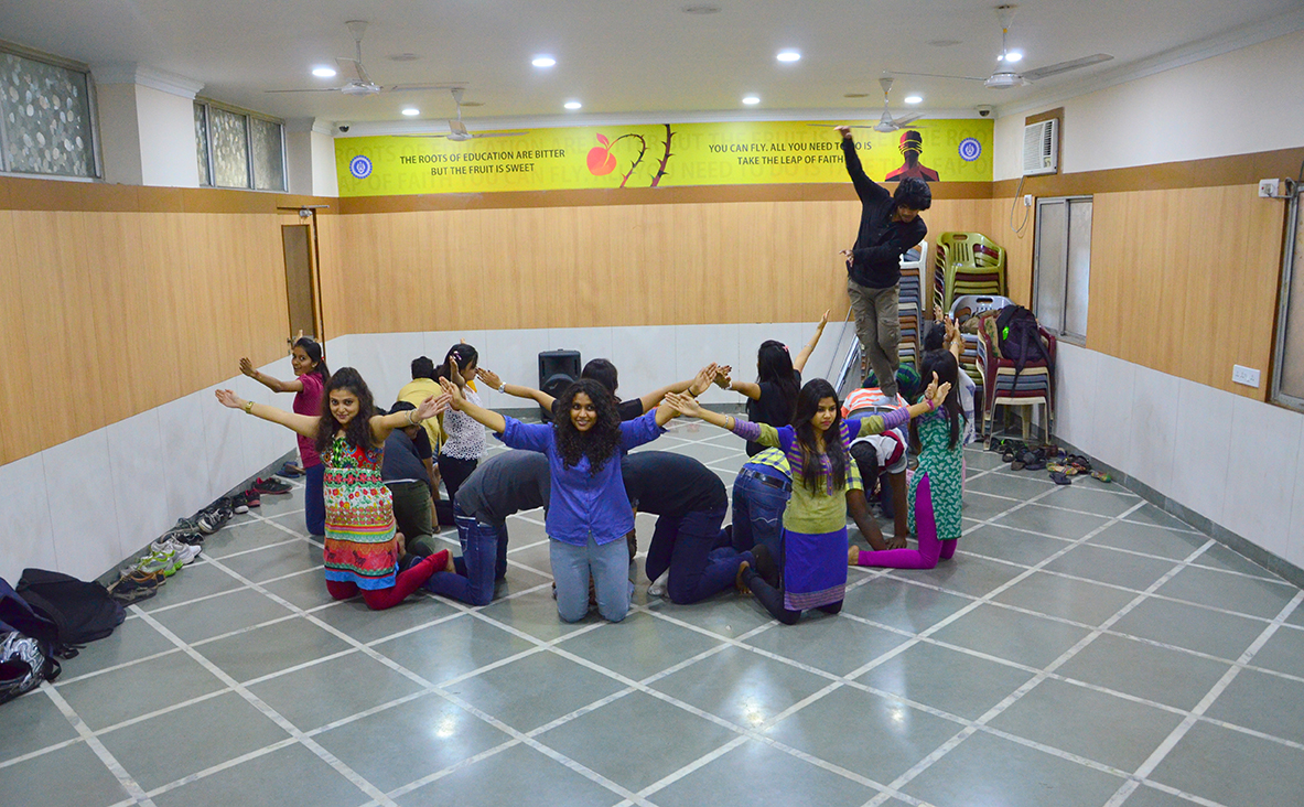 The session began with students gathering and making a huge circle, introducing themselves, but it was not as simple as it sounds! All the students were asked to introduce themselves in a dramatic manner. Each student came in the middle of the circle and introduced themselves with different forms of drama skills involving body movement and some even with dance move. Moving on, all played a number game in which Mr. Sumit called out a particular number from 1 to 10 and as the number was called out the students had to form a team of exact number. Students who failed to do so accordingly were eliminated from the game. It was followed with some warm-ups to enhance energy level and boost self-consciousness. Later everybody learnt how an object depicts different forms for different people. Volunteering individuals were chosen from the circle andwere asked to analyze a static image which was formed and to think what that image can portray. Different ideas came out which definitely were very interesting. By the end of the workshop, students were asked to team up in an equally and four teams were made. The basic idea was that each team had to portrayan image which other teams had to guess, that required a perfect team work, intellectual and physical effort. All four teams after time span of ten minutes of preparation time came up with astonishing images to be portrayed. Team C showed a perfect scene of Lord Krishna’s ‘Raath’ or ‘Chariot’ while one team portrayed a gym and all equipment.