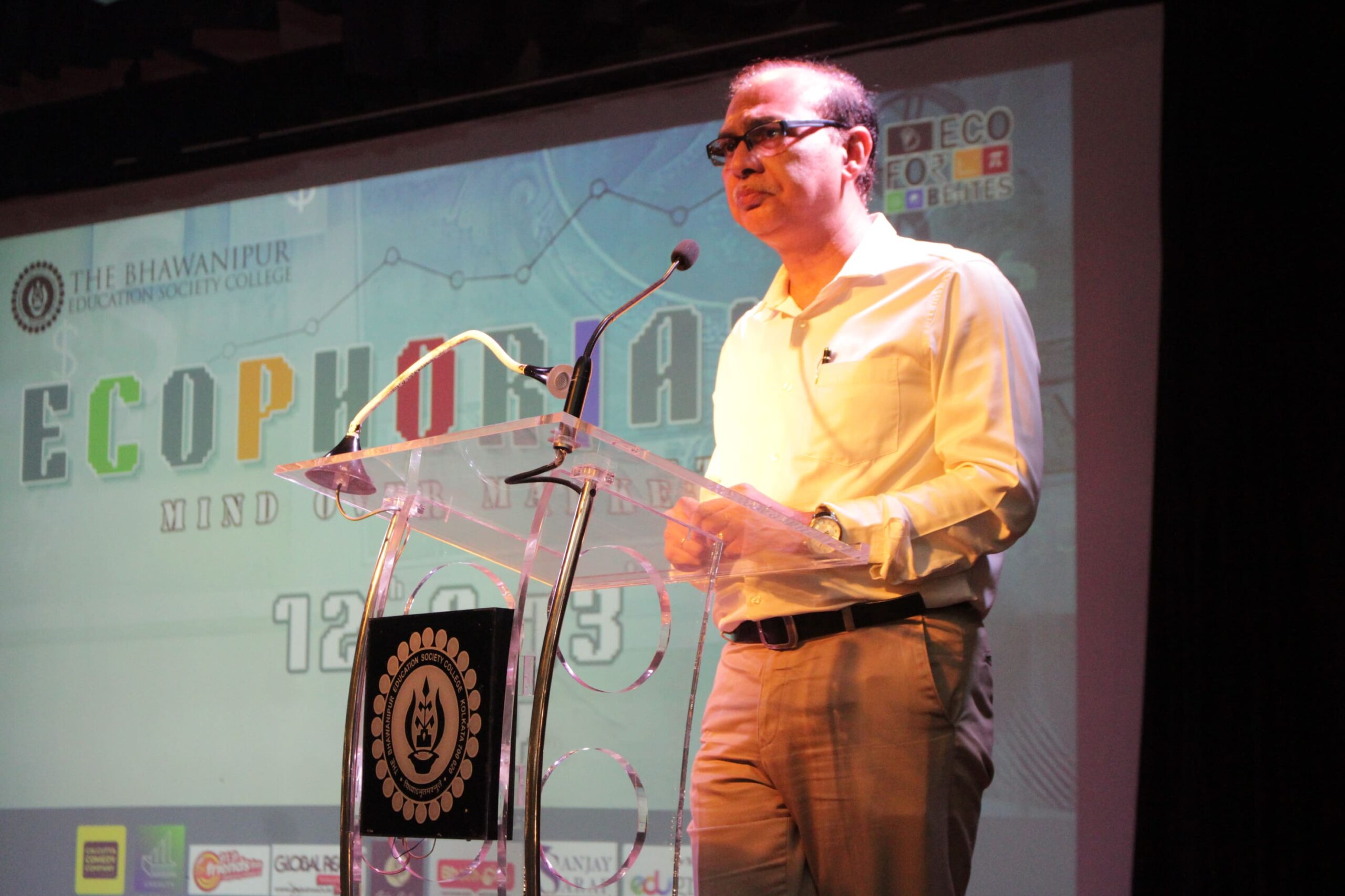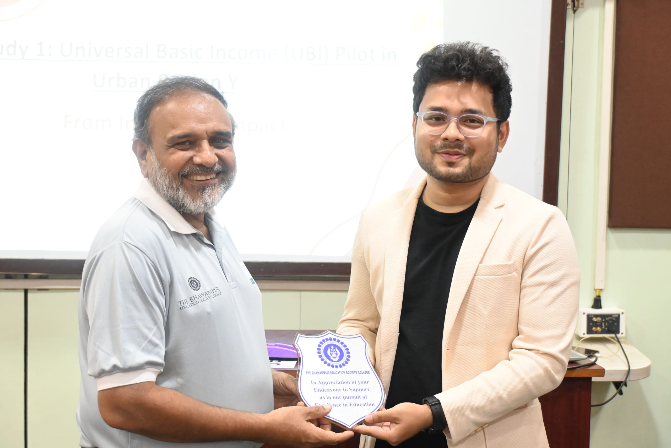 Ecophoria 2025 commenced with the Inaugural Ceremony at 9 A.M. in Jubilee Hall with the traditional lighting of the lamp by Prof. Dilip Shah, Rector and Dean of Student Affairs, and Chief Guest Prof. Saibal Kar, Reserve Bank of India Chair Professor of Economics at the Centre for Studies in Social Sciences, Calcutta (CSSSC). Following a brief address highlighting the importance of economics and its vital role in shaping society, Prof. Saibal Kar engaged participants in an informative yet entertaining game. The activity involved selecting economic policies to prevent a hypothetical financial meltdown, which proved an interactive way to introduce critical thinking in policy-making. The ceremony was then led by Prof. Dilip Shah, after which the College Representative, Amrit Chordia and Event Coordinators, Swadhin Paul and Kinnari Sailesh Shah, officially declared the fest open. This was followed by a celebratory cake-cutting ceremony.