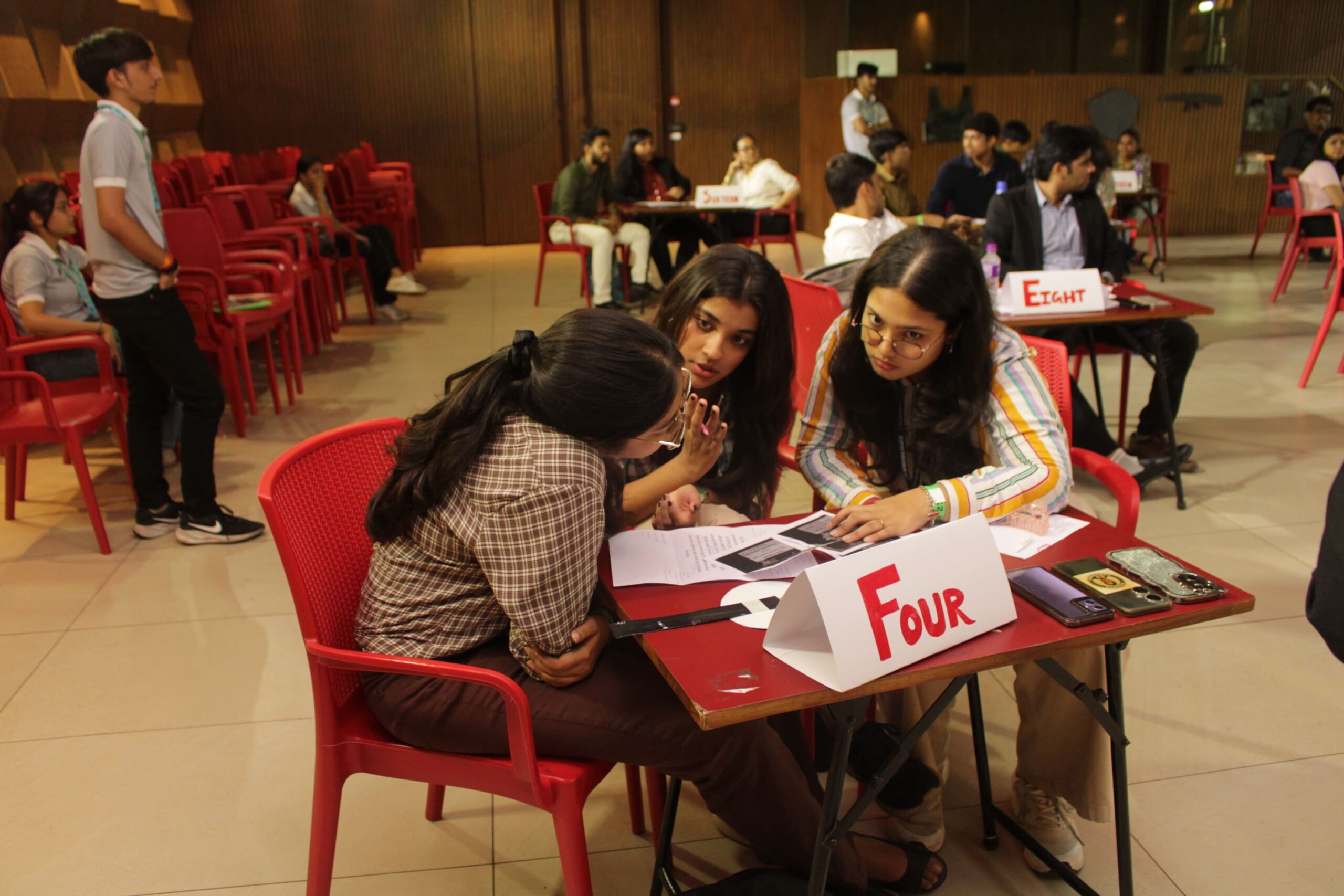 RISE FROM ASHES – This event was held on the 15th of May 2025 from 2:00 P.M. to 6:00 P.M. in the Society Hall, with a total of 11 teams taking part in the event and each team consisting of 2 participants. In this event, each team was given a company from a specific sector that was either failing, was on the verge of shutting down, or had already closed. The goal was to come up with creative ways to rebuild and bring these companies back to life. The event had two rounds, where in Round 1, the teams had one hour to make a PowerPoint presentation (PPT) with ideas on how to rebuild the company, which also included strategies to help the company grow again; and in Round 2, each team presented their PPT in front of a judge under 3 minutes with an extra minute for questions. Everyone present in the audience was allowed to ask questions about the ideas shown in the PPT. The teams were judged based on how well they presented and how confidently they answered the questions.