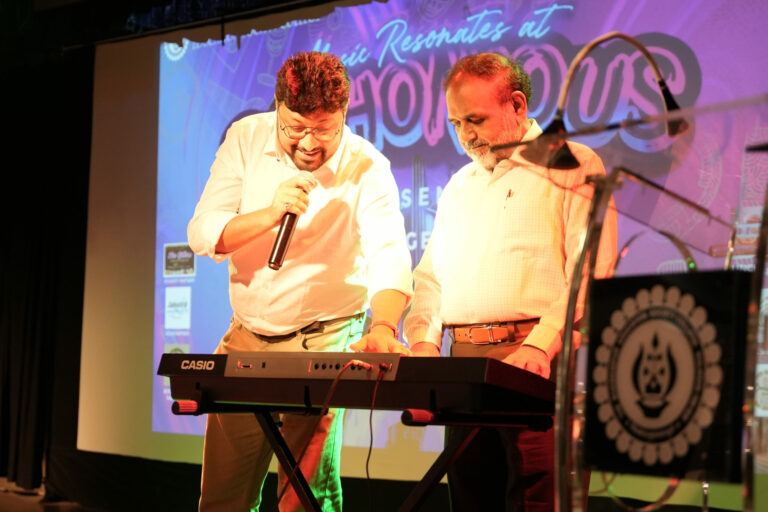 The Euphonious 2024 began at 10:00 A.M. with the Opening Ceremony, where the melody queen Sonakshi Kar, the winner of Indian Idol Junior, Saregamapa Lil Champs and Indian Idol Season 13, officially commemorated Euphonious with the song “Ghar Mode Pardesiya”. Interestingly, 28th September also marked the birthday of Prof. Dilip Shah, Rector and Dean of the Students’ Affairs, BESC, making the occasion even more memorable and worthy of celebrations. The theme of Euphonious 2024 was “Monsoon”, and keeping in mind the theme, the Art-In-Me Collective of The Bhawanipur Education Society College decorated the Halls, which Mr. Shah and the entire house commended and applauded. He then introduced Mr. Sourav Goswami, the Mentor of Crescendo and together they paired to give the audience a melodious song and officially announced the beginning of Euphonious 2024.