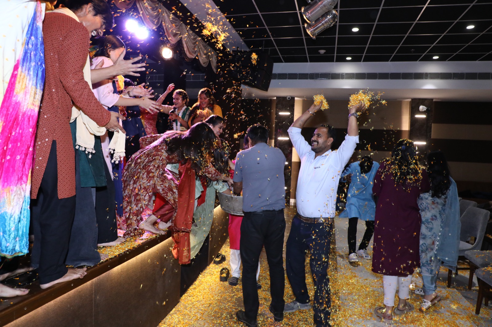 The programme concluded with a floral shower on the staff, recreating the festive spirit of Holi with music and dance, and expressing heartfelt appreciation for their hard work and commitment.