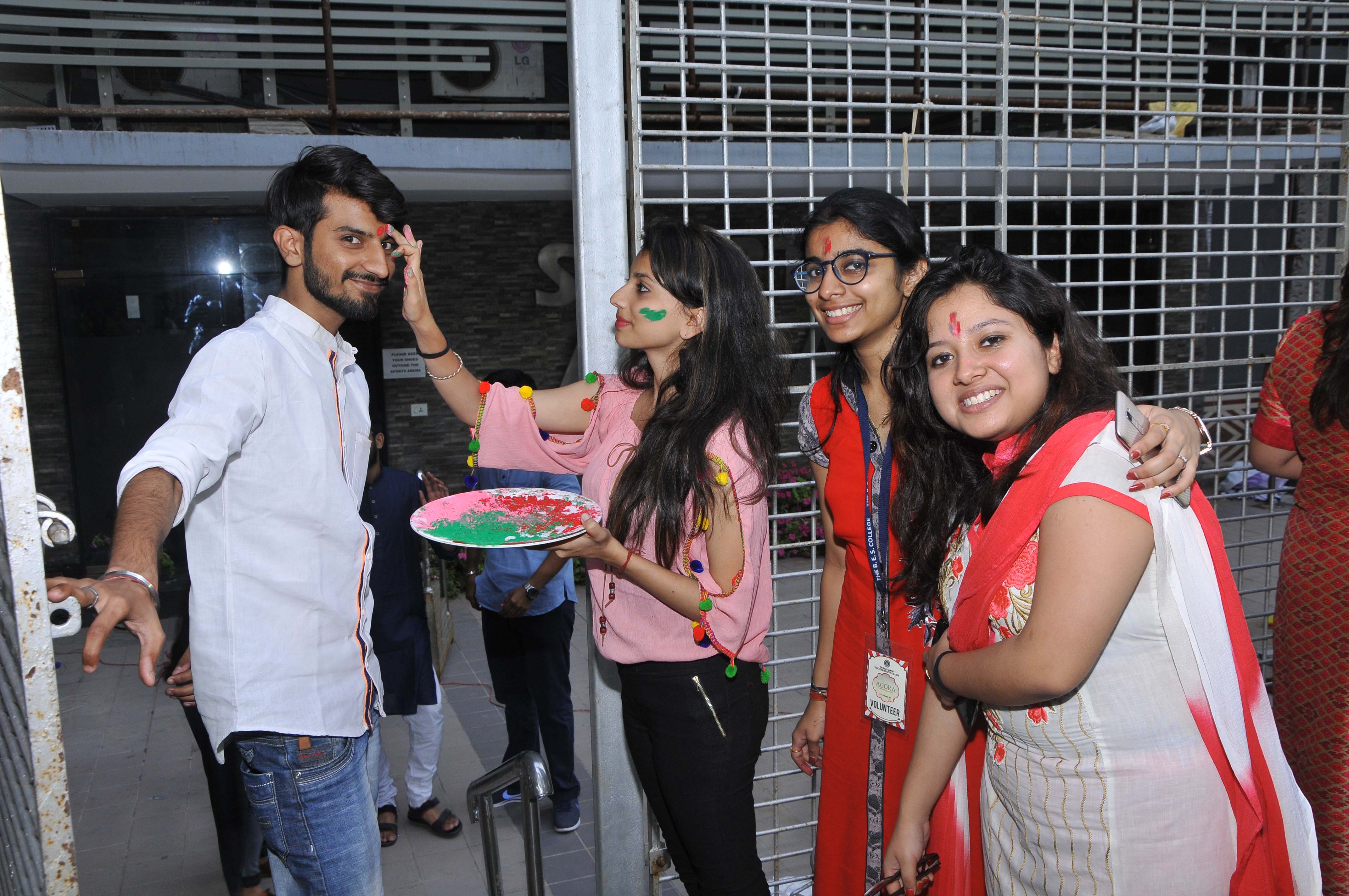 True to its traditions of inclusiveness, BESC honours the services of the members of its non-teaching staff making sure that the vibrant hues of Holi add a dash of colours to lives dedicated to the institution and the cause of the students it espouses. In its inimitable way, the institution celebrates Fagun – the harbinger of Spring, of renewal of vows and the appreciation of the dedication of its staff – with flower petals, abhorring the use of artificial colours in a Campus that is as green as Nature herself.