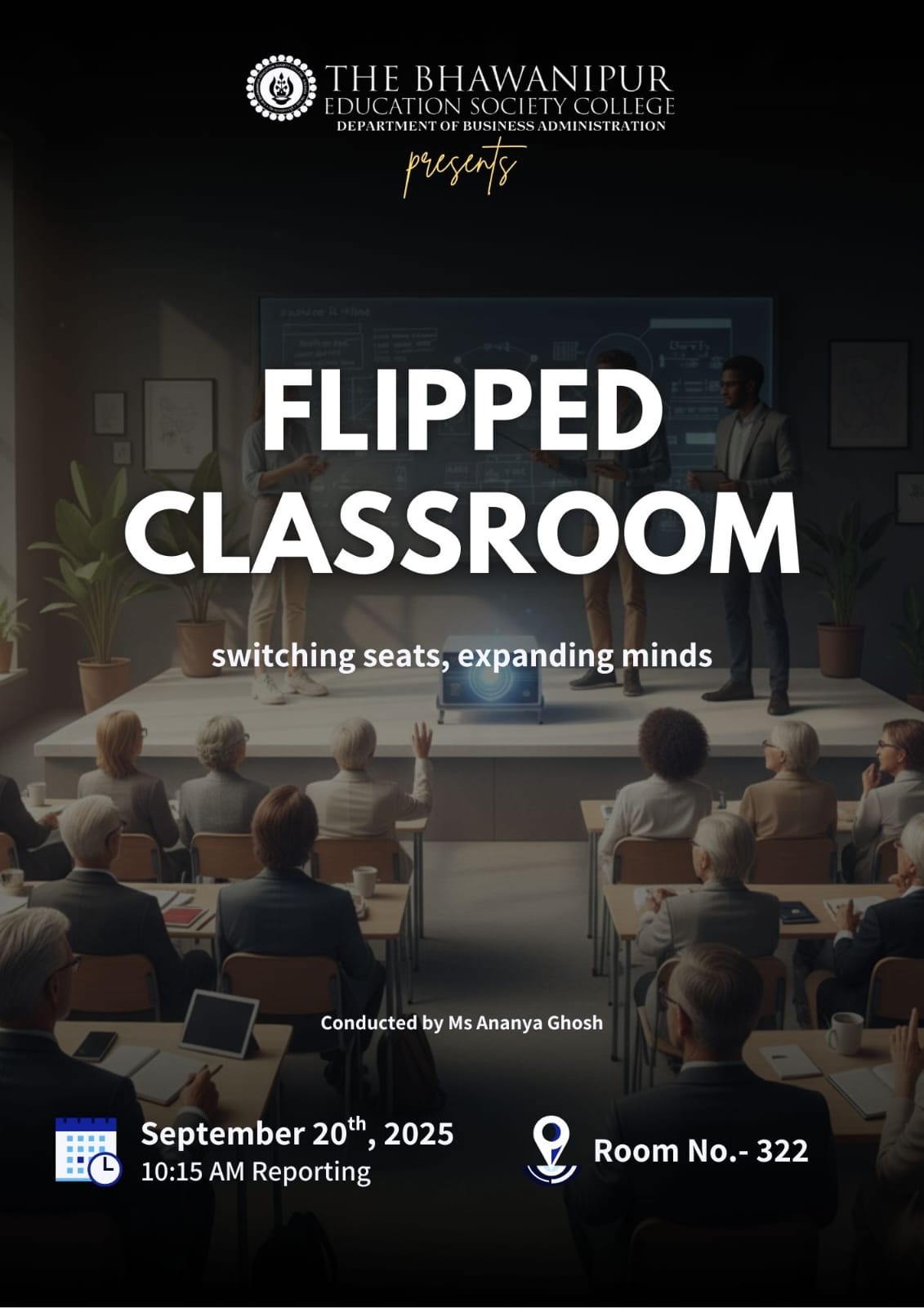 The Department of Business Administration at The Bhawanipur Education Society College successfully organised a Flipped Classroom Seminar on 20th September, 2025. The event was held in Room 322 (3rd floor) and engaged an audience of over 60 people.