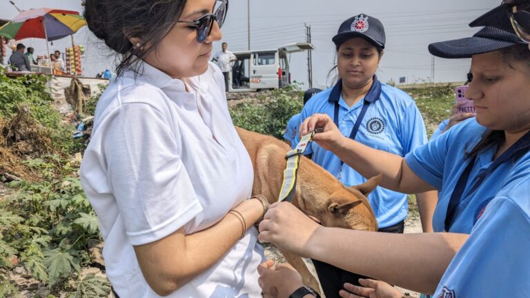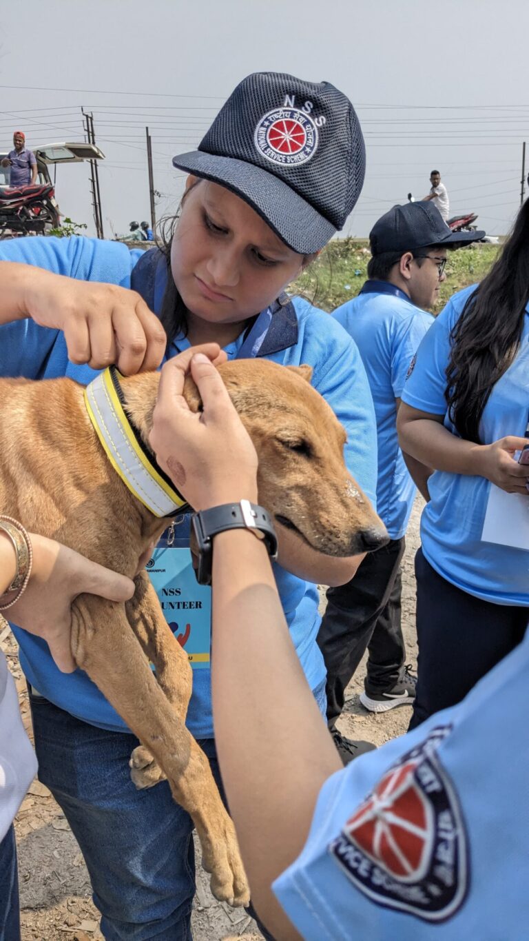 Brief description of the event: On February 24, 2024, a collaborative effort between The BESC and FurrFolks resulted in the successful distribution of 200 reflective collars along the Kolkata to Bolpur Highway to the stray dogs. These collars play a crucial role in enhancing the safety of pets and stray animals during low-light conditions. The primary objective of this distribution drive was to promote responsible pet ownership and improve the visibility of animals, especially during nighttime or adverse weather conditions. Reflective collars serve as a simple yet effective solution to reduce accidents and ensure the well-being of our furry companions. NSS volunteers coordinated with FurrFolks to procure the reflective collars. Volunteers were briefed on safety protocols and the importance of the initiative. Starting from Kolkata, we covered key points along the Bolpur Highway. Stray dogs were offered food first and with a friendly approach each collar was carefully fitted to the pet, ensuring comfort and proper visibility.