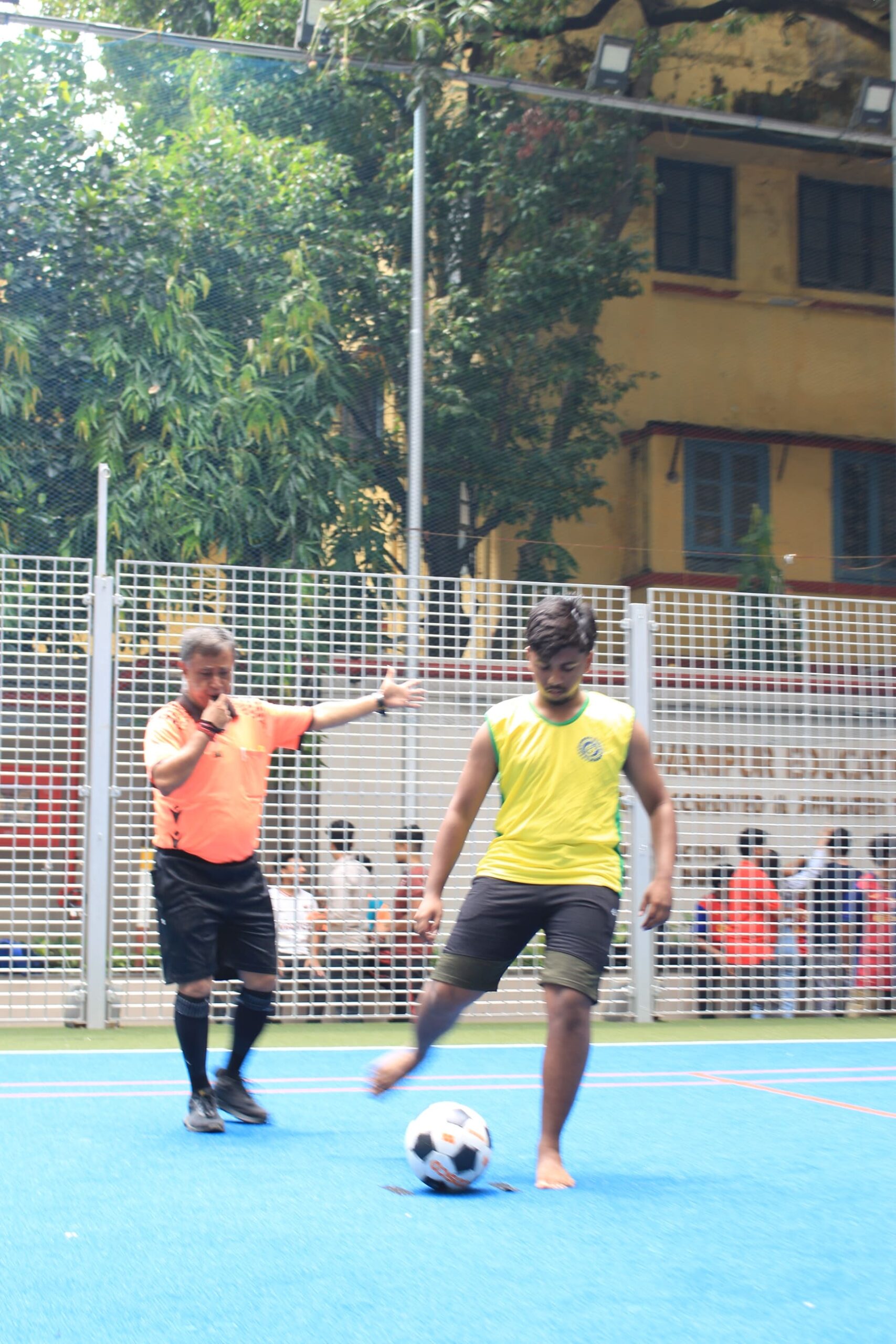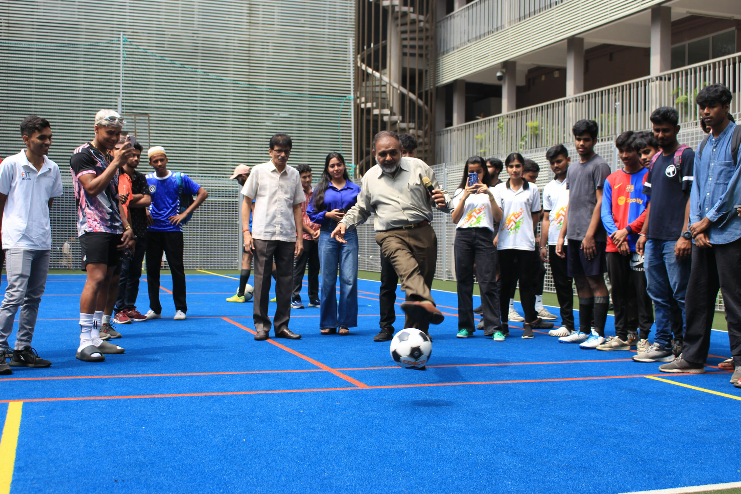The day commenced with a speech from the organisers, followed by a few words from the Rector and Dean of Student Affairs, Prof. Dilip Shah, and BESC’s Joint Secretary, Mr. Jitendra Shah. They all spoke about the greatness of football and the importance of sports in our lives — whether for fitness or for pure fun. The event officially began with Prof. Shah taking the opening penalty kick, scoring a goal on his first try.