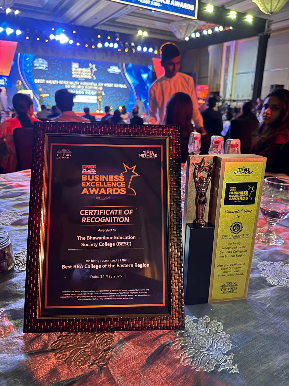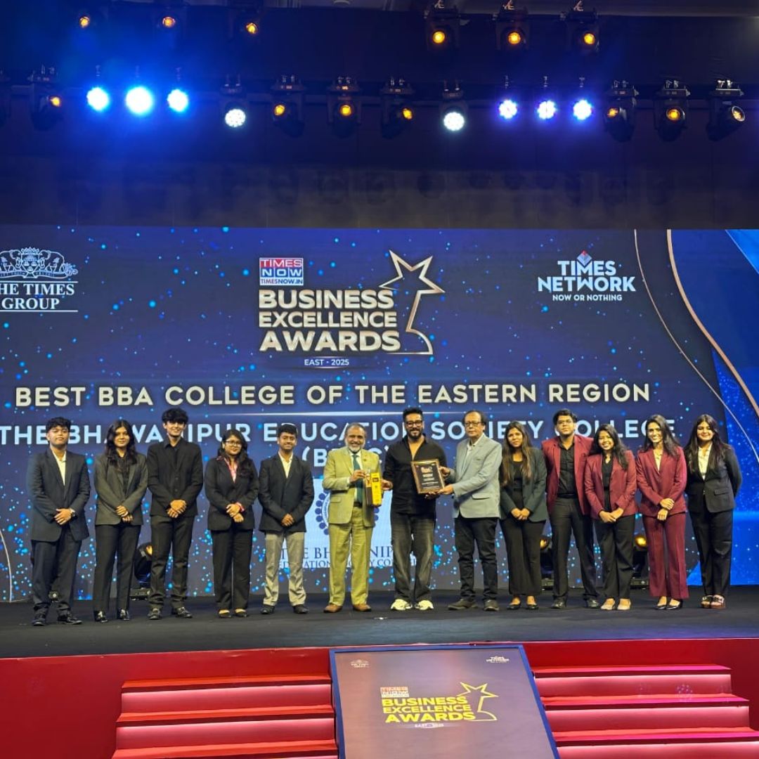 The BBA Department of The Bhawanipur Education Society College has been awarded the Best BBA College in Eastern India at the prestigious Times Now Annual Education Summit 2025, held on 24th May at ITC Royal, Kolkata.
