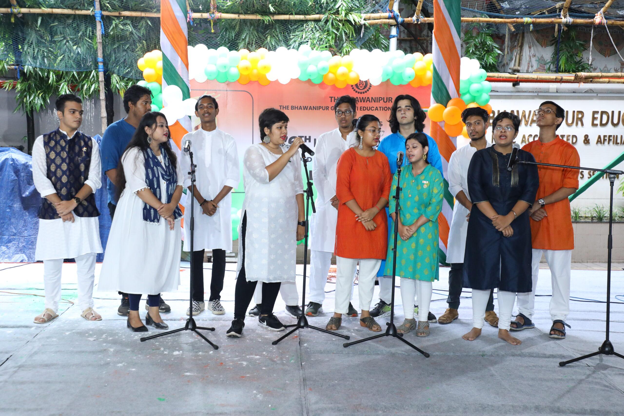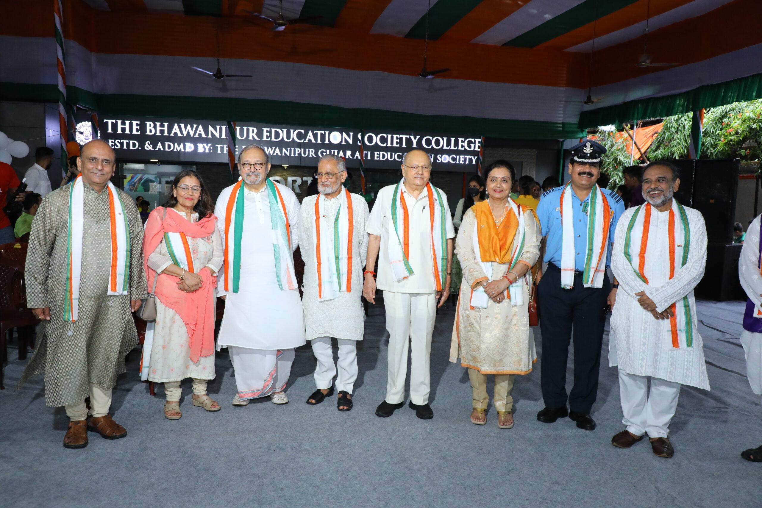On 15th August 2022, The Bhawanipur Education Society College celebrated the 76th Independence Day of our Mother India. The festivities began from 09:30 AM with the Flag hoisting ceremony followed by the National Anthem ‘Jana- Gana-Mana’, sung by the audience with full patriotism and passion. Present on the occasion were members from the management Sri. Bulbul Shah, Sri Pankaj Parekh, Sri. Jitendra Shah, Sri Umesh Thacker, Smt. Nalini Parekh, Smt. Renuka Bhatt along with the Teacher in-Charge Dr. Subhabrata Gangopadhyay, Dean of Student Affairs Prof. Dilip Shah & the Director General Dr. Suman K Mukerjee. Chief guest for the occasion were Commander Vishnu Sharma, Subedar Bhawani Risal and Sergeant Bharat Bon Pun.