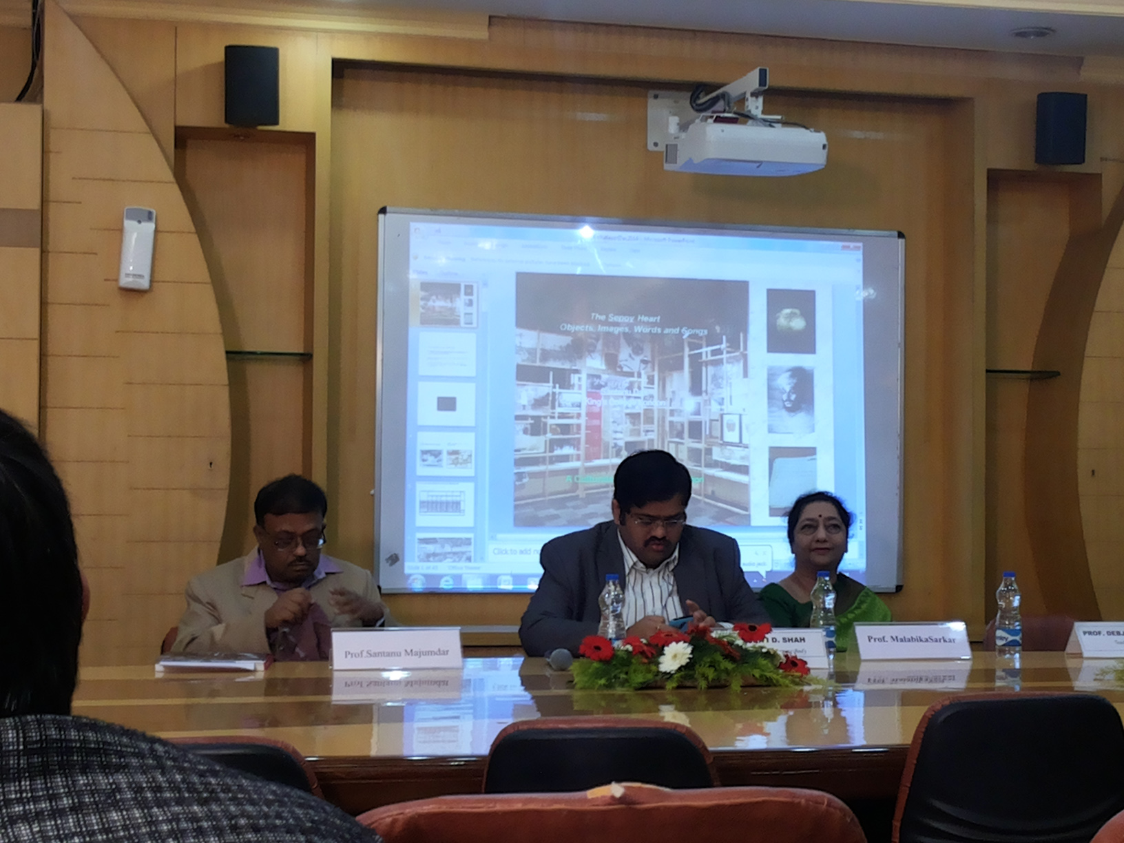 On December 16, the seminar was inaugurated by Professor Malabika Sarkar, former Vice Chancellor, Presidency University at 10-30 am. The keynote address was delivered by Dr, Santanu Das, King’s College London at 11-15 am. The session was chaired by Dr. Santanu Majumdar of the University of Calcutta, Department of English. Dr. Das, a renowned scholar on War poetry spoke at length on the experience of the Indian Sepoy in the War. His presentation titled ‘The Sepoy Heart: Image, Music, Text’ featured images of the Indian Sepoys in War and also the indigenous war songs composed on the occasion. In the second session Dr. Argha Banerjee provided a new perspective on War, focusing on the reflections of environmental issues about land and the threats posed to pastoral life in World War Poetry. The session was chaired by Prof. Tirtha Prasad Mukhopadhyay from the Department of English, University of Calcutta. In the post lunch session chaired by Prof. Ujjal Kumar Majumdar, a retired faculty of the Department of Bengali, University of Calcutta, another eminent speaker, Professor Sanjay Mukhopadhyay of the Jadavpur University, Department of Film Studies gave an eloquent presentation on the Second World War Documentary film ‘Night and Fog’ by Alain Resnais. The presentation highlighted rarely featured archival details from the Nazi Concentration Camps. The next session, chaired by Prof. Sinjini Bandpophyay of the Department of English, University of Calcutta consisted of presentations by four speakers from reputed institutions who spoke at length about the representation of war in art and media. The session was concluded by a presentation on women and war by the students of the Bhawanipur Education Society College.