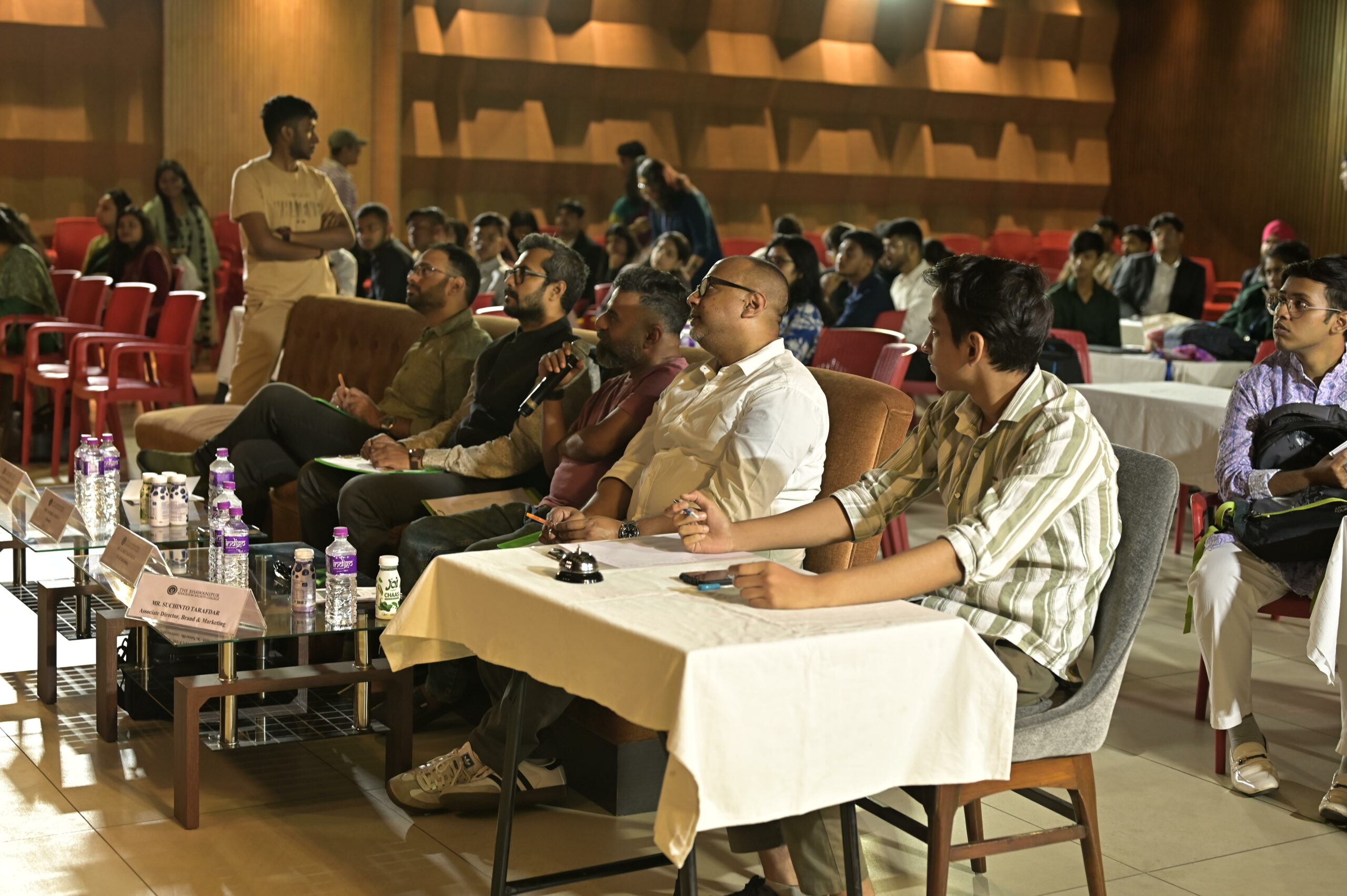The event started with a motivating speech from the Rector and Dean of Student Affairs, Prof. Dilip Shah, who used examples of Gautam Adani and certain alumni of the college to motivate and encourage students to perform their best. He went on to mention how a certain chocolate business, starting from our college, found its way to success from the very institution that proved to be its brainchild. He ended his speech by wishing the participants the best of luck and thus kicking off the event. His speech was followed by the introduction of the judges’ panel, which consisted of Mr. Suchinto Tarafdar, Associate Director, Brand & Marketing; Mr. Aloke Majumder, VP of Technology at Hoichoi TV; Prof. Sankha Acharya, Founder of Two Pi Aar; and Prof. Mahesh Hathiramani, Entrepreneur and Guest Faculty at the Department of BBA at The BESC.