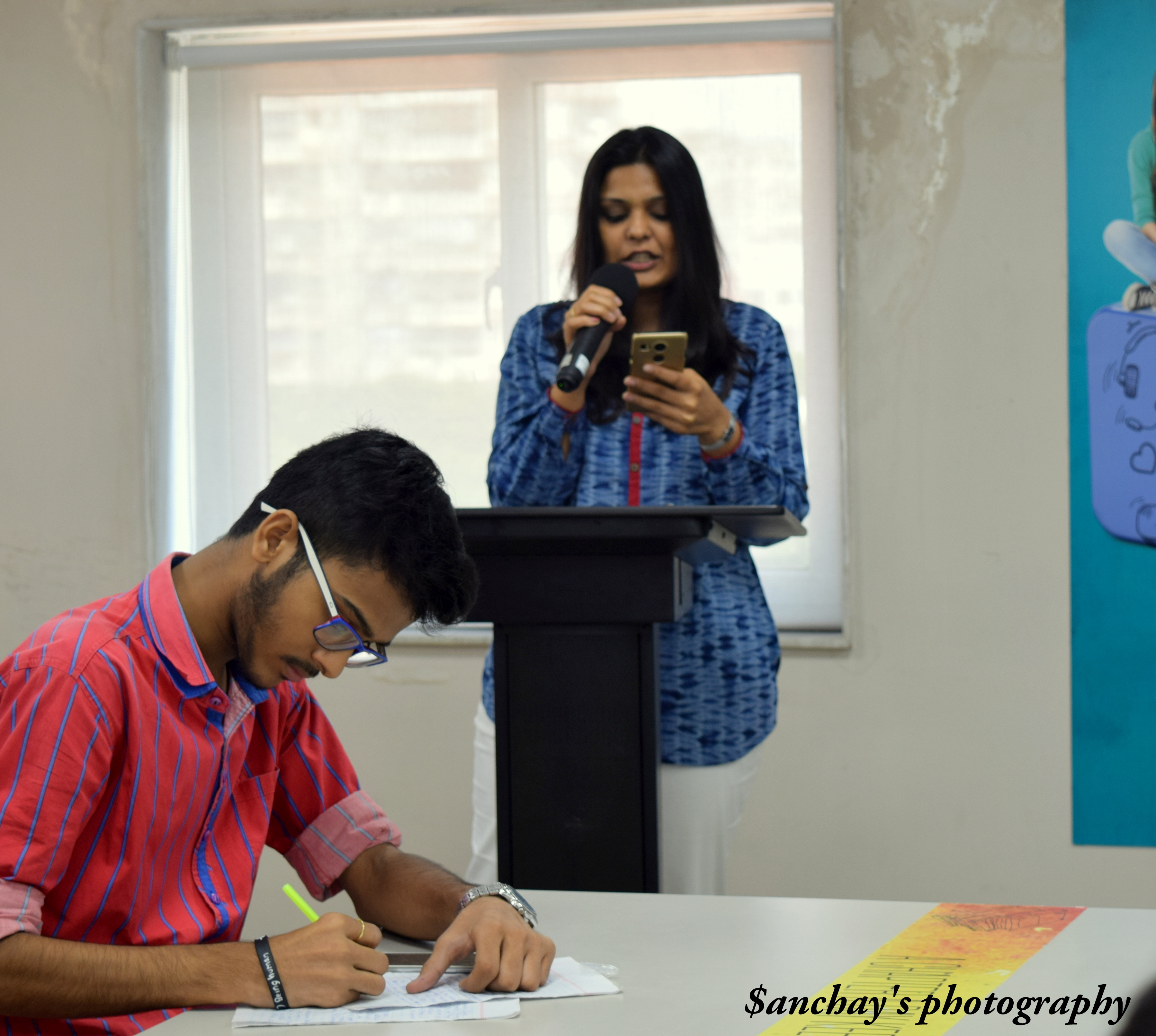 VishakhaAgarwal presented a marvellous literary piece-“God sees the Truth, but waits”. This was followed up with the recitation of Poetry by the AIM student coordinator,BharatiKhairajni. The event was also witnessed by an ex-Beite, Ms.PalakChokani. Besides this, the event was also enlightened with the presence of Prof. Kaushik Banerjeeand Mr.DevrajLahiri. The event ended with the recitation of an inspiring literary work by the AIM Collective teacher coordinator –Prof.Mohit Jain.