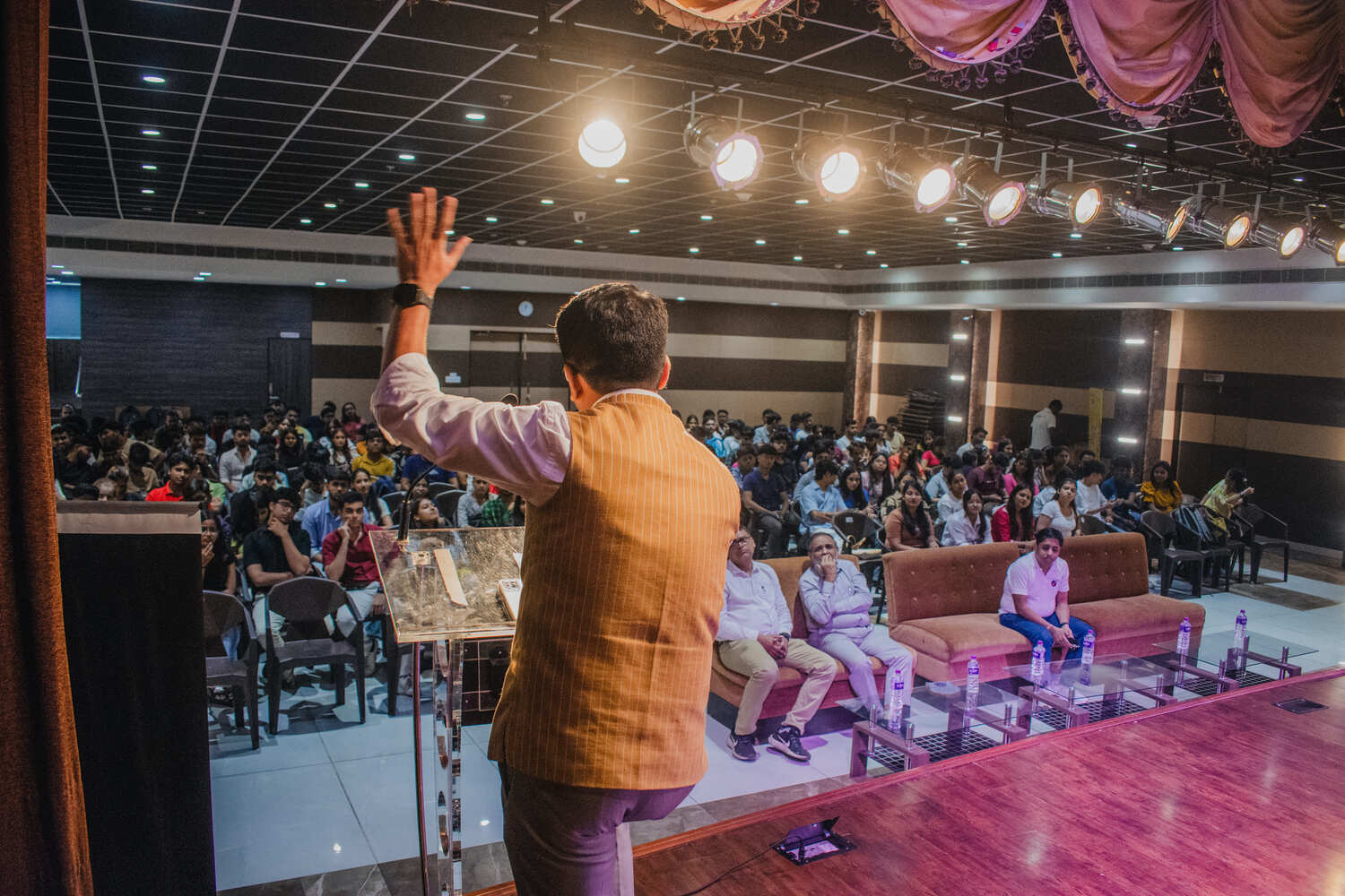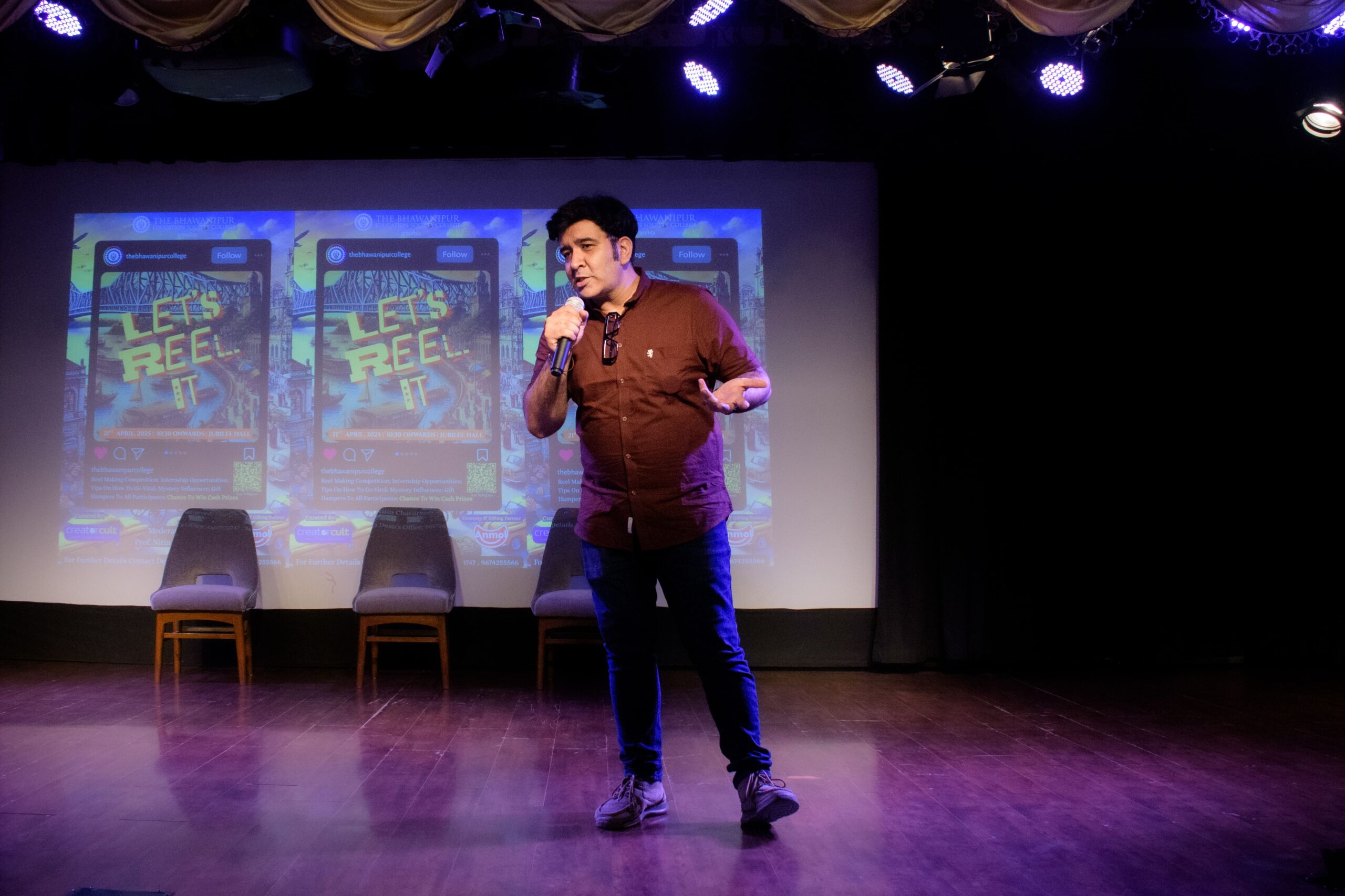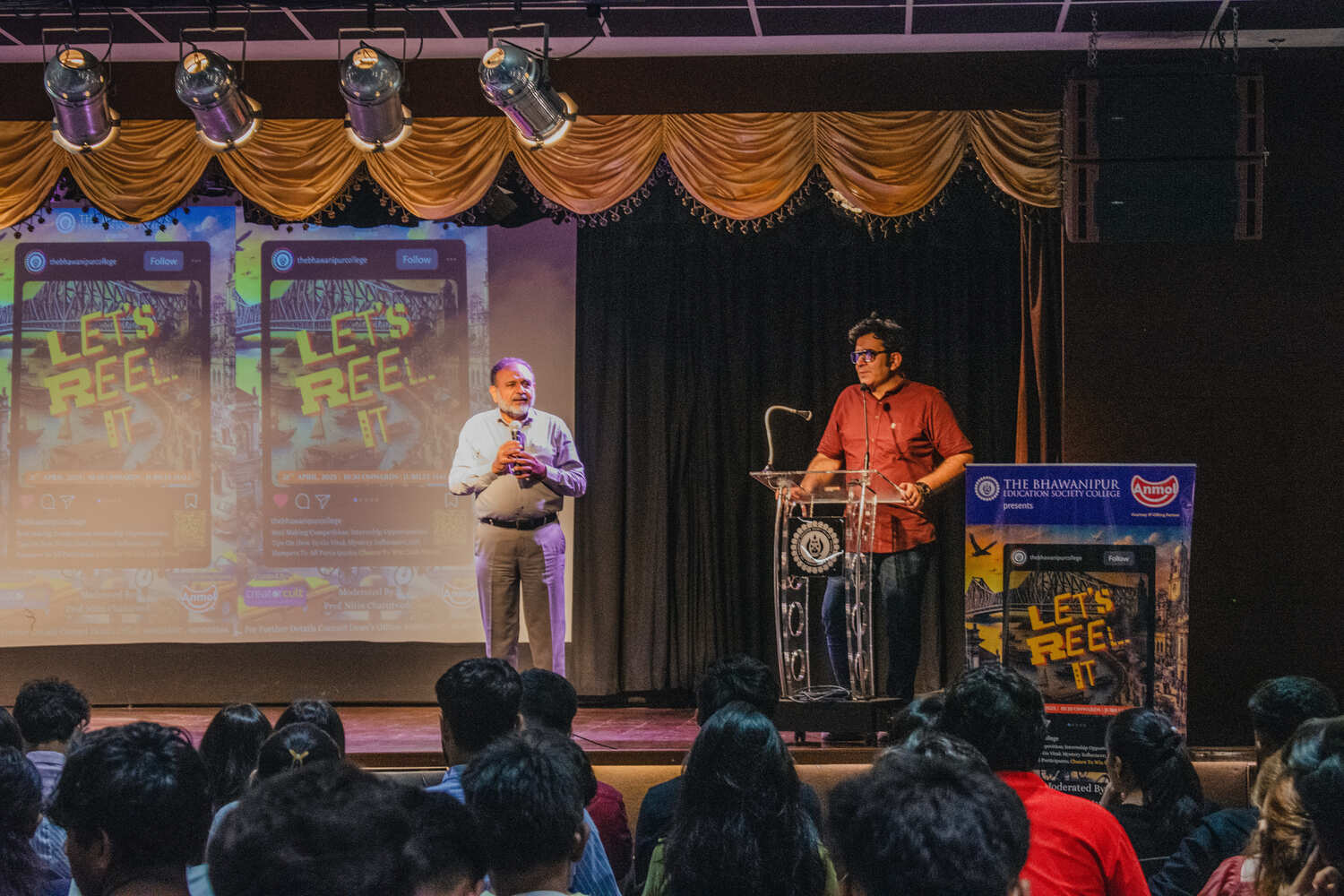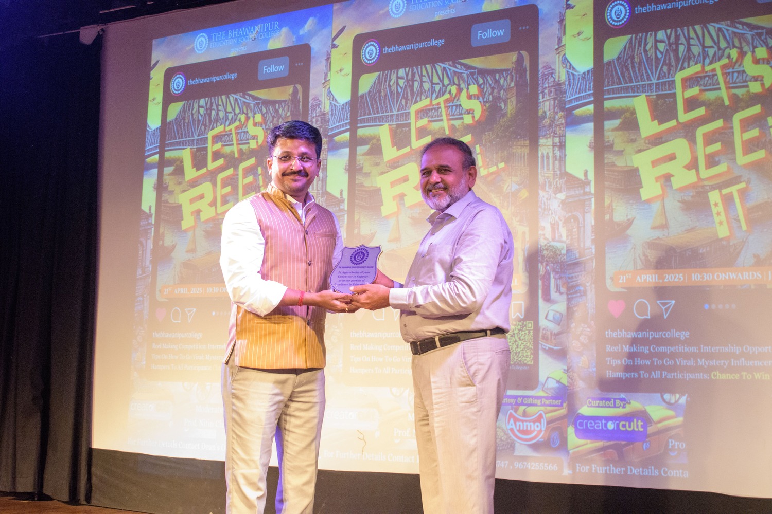 The Rector and Dean of Student Affairs, Prof. Dilip Shah, welcomed the attendees and addressed the engagement that comes with content creation, and encouraged them to take part in the competition of crafting engaging reels using the products of our sponsor, Anmol. Following this, he announced the launch of a new collective, Scroll Squad, which would prioritize social media engagement for BESC, to which the crowd reacted by chanting our college slogan. Additionally, he felicitated our guest speakers with a memento.