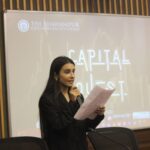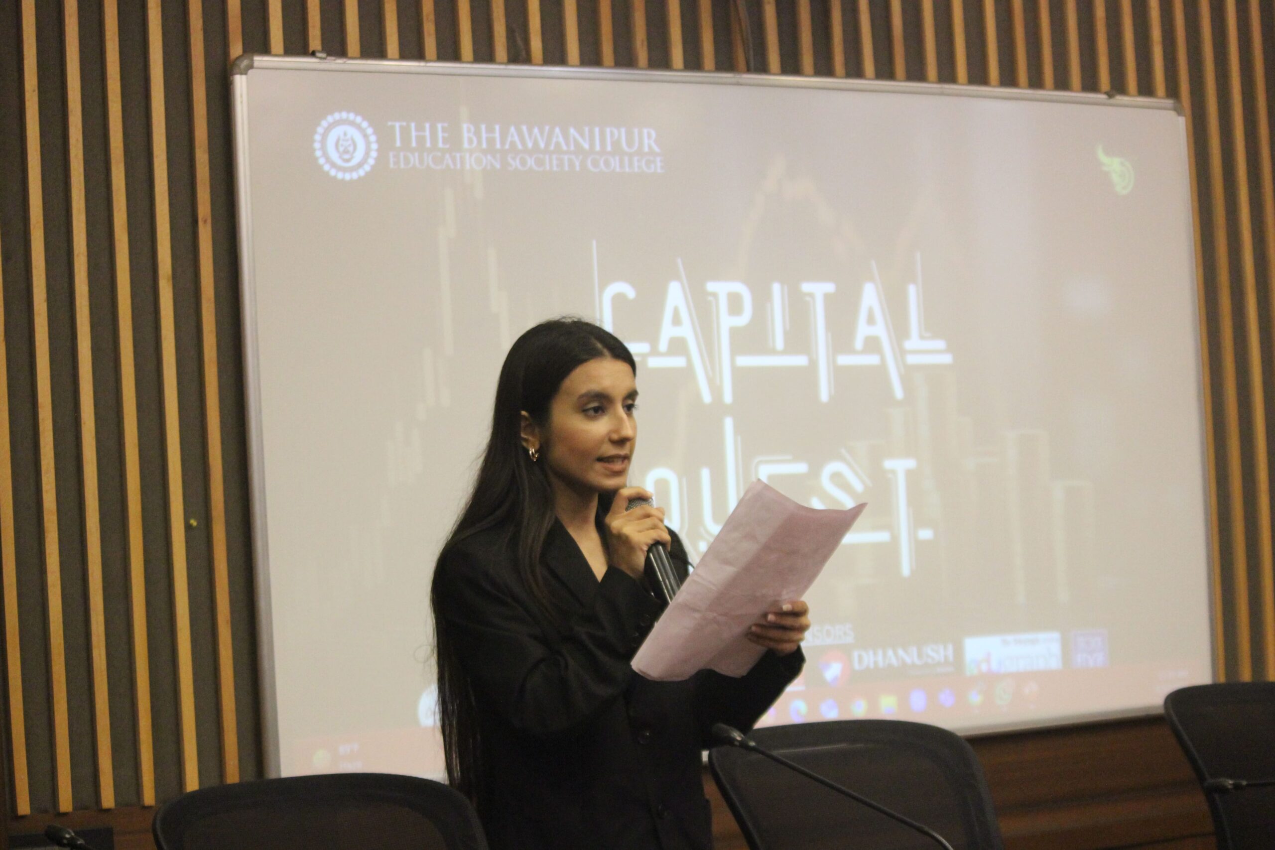 CAPITAL QUEST: This venture pitch event was held on 12th June 2025 in Society Hall from 11:00 A.M. to 1:00 P.M. It mirrored the format of Shark Tank, offering a platform for startups to secure funding. Each team had 2–4 participants and 8 minutes to pitch. The judge, Shivam Saha, a Chartered Accountant with experience in firms like Emraan Hashmi Films Pvt Ltd and ED-A-Mamma, provided insights and feedback.