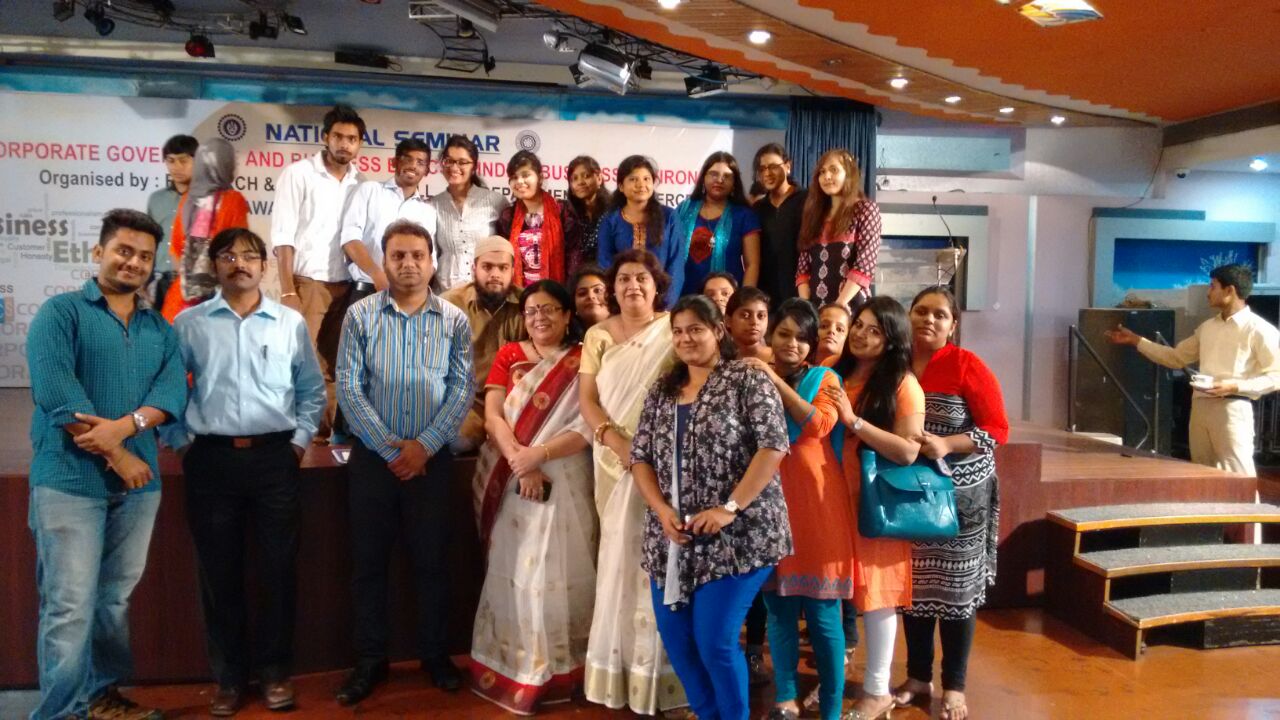 On Tuesday, 28th April, 2015, NATIONAL SEMINAR on “CORPORATE GOVERNANCE AND BUSINESS ETHICS IN INDIAN BUSINESS ENVIRONMENT” was held, venue being the 6th Floor college auditorium. The seminar was organised by Research & Publication Cell, Post Graduate Department of Commerce in collaboration with Department of Commerce, University of Calcutta. The 10 a.m. to 5 p.m. programme started with a one-minute mourn for the Nepal earthquake victims which occurred on 25th April, 2015. The inauguration ceremony started with an address by Prof. Lalit Kumar Joshi, organising secretary, where he presented the theme of the seminar. This was followed by the welcome address by Prof. Debjani Ganguly, Teacher-in-Charge addressing Prof. Dhrubajyoti Chattopadhyay, Pro-Vice Chancellor (Academics), University of Calcutta, Prof .Swagata Sen, Dean, Faculty Council for Post Graduate Studies in Commerce, Social Welfare and Business Management, University of Calcutta, Prof. Ranjan Kumar. Bal, Professor and Former Dean of Commerce, Utkal University, Bhubaneswar and Former President, Indian Accounting Association. The first journal by research and publication cell named “The BESC journal of Commerce and Management” was realised by Prof. Dhrubajyoti Chattopadhyay Pro-Vice Chancellor (Academics). The lamp lighting ceremony was then carried out by Prof. Dhrubajyoti Chattopadhyay. The seminar was also graced by a galaxy of intellectuals from different areas of the country i.e. both from inside the state and outside. In his inaugural speech Prof. Dhrubajyoti Chattopadhyay spoke on various points and sub points of following Corporate Governance and the importance and ways of following Business Ethics for a successful economy.