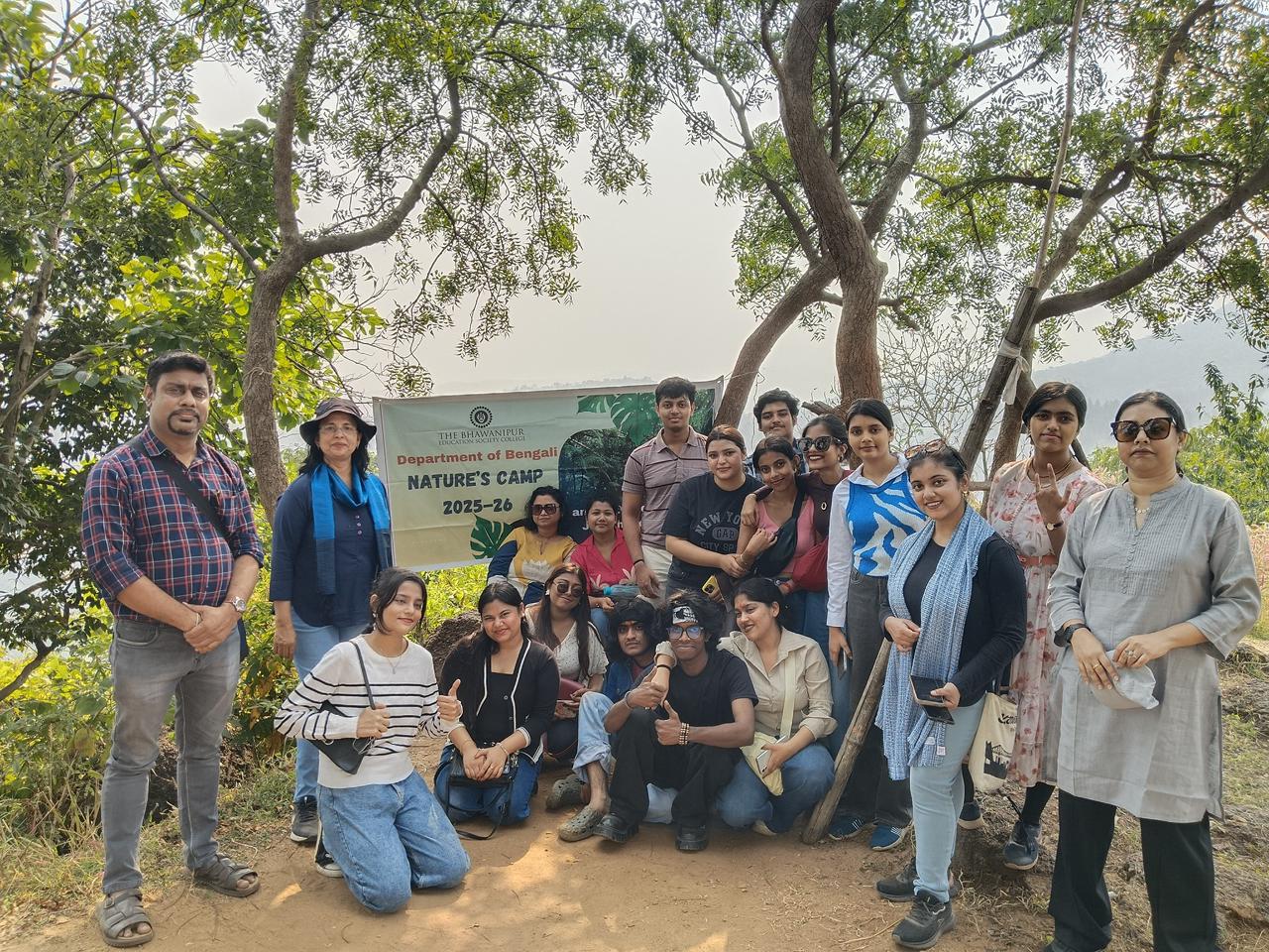 The Department of Bengali organised a four-day Nature’s Camp at Ghatshila, allowing students to explore the region’s ecological richness and its deep resonance in Bengali literature. Visits to the Subarnarekha River, Dharagiri Falls, Burudi Lake, Galudi, and forested areas around Raat Mohona helped students connect these landscapes with their depictions in various literary texts.