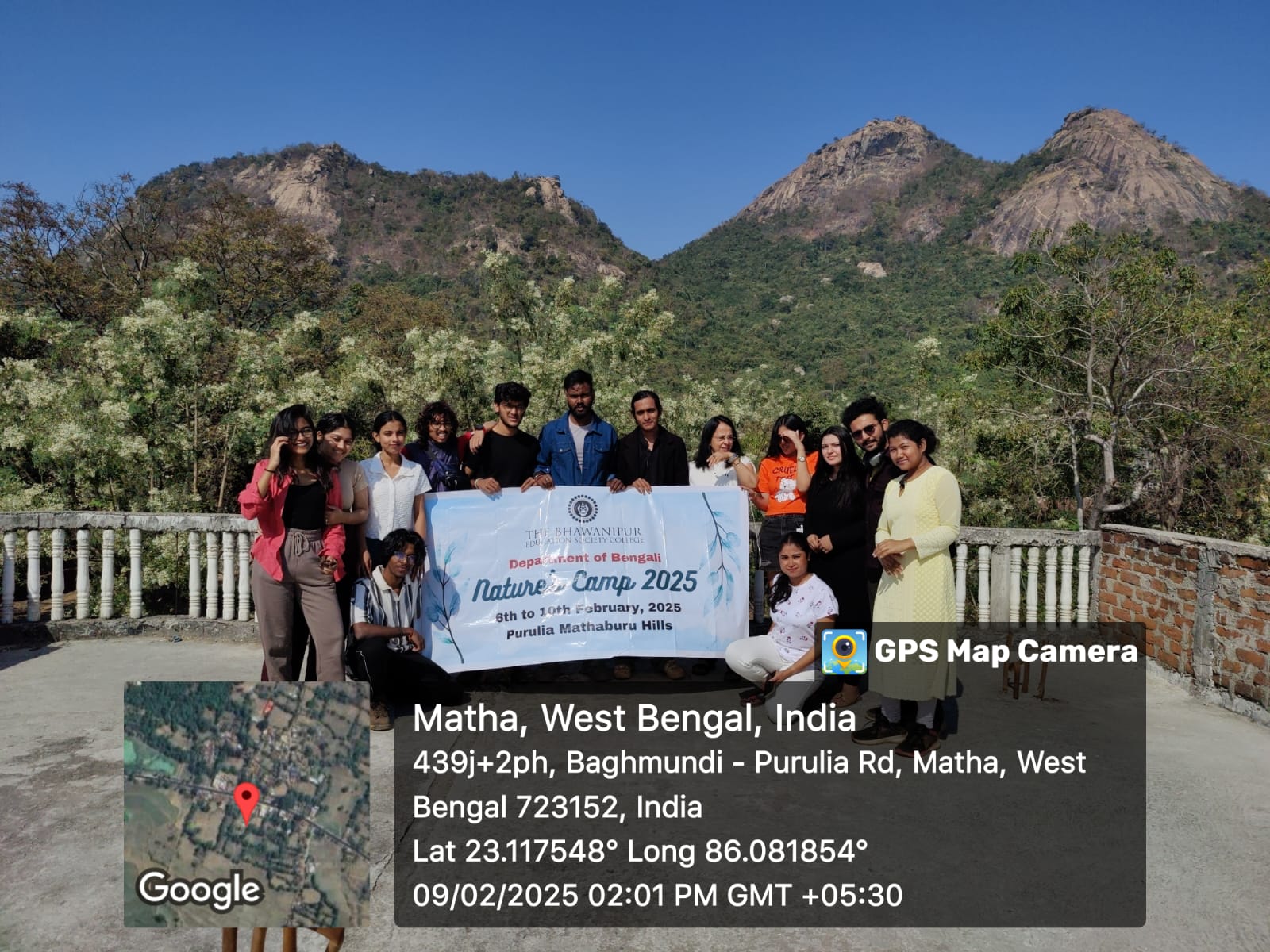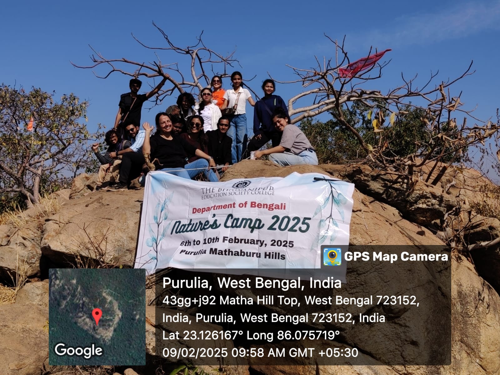 The Bengali Department of Bhawanipur Education Society College organized a Nature’s Camp from 6th February to 9th February at Mathaburu Range, Purulia. The camp aimed to provide students with an immersive experience in nature while exploring the local culture, food, and demography of the region. A total of 15 students and one faculty member (Dr. Mili Samaddar) participated in this enriching expedition.