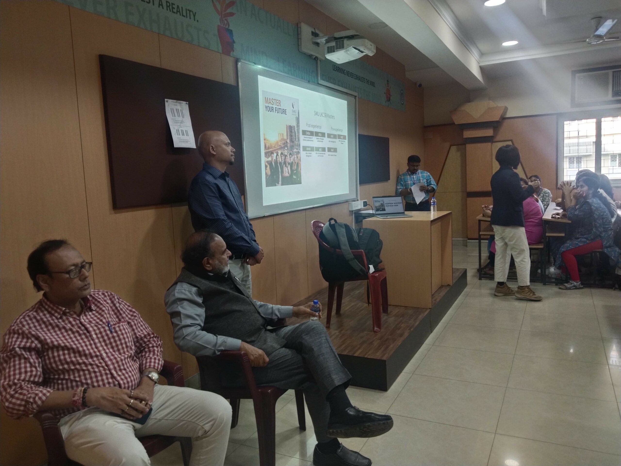 Having explained the structure of the programme, she also spoke about the tuition and living costs in Singapore, as well as the numerous scholarships available there. Her session was brought to a close after answering a round of questions from the eager students. They presented their queries regarding the institution’s rankings, electives available, and graduation requirements. After Ms Parakkat’s session, Dean Sir, Mr Dilip Shah, took the dais to encourage and motivate the students regarding the opportunities at SMU. The programme concluded with Prof. Sengupta’s closing address and a vote of thanks.