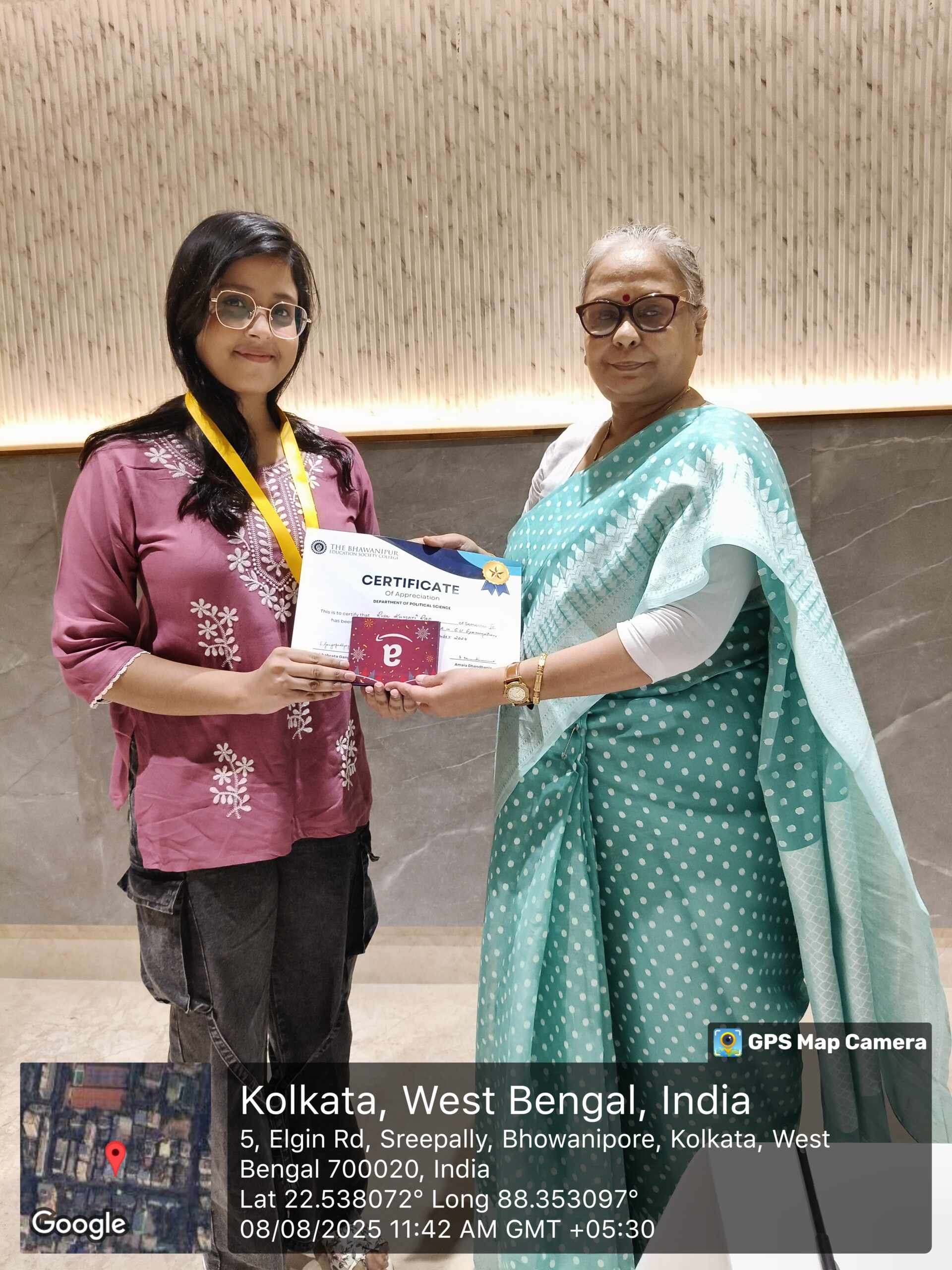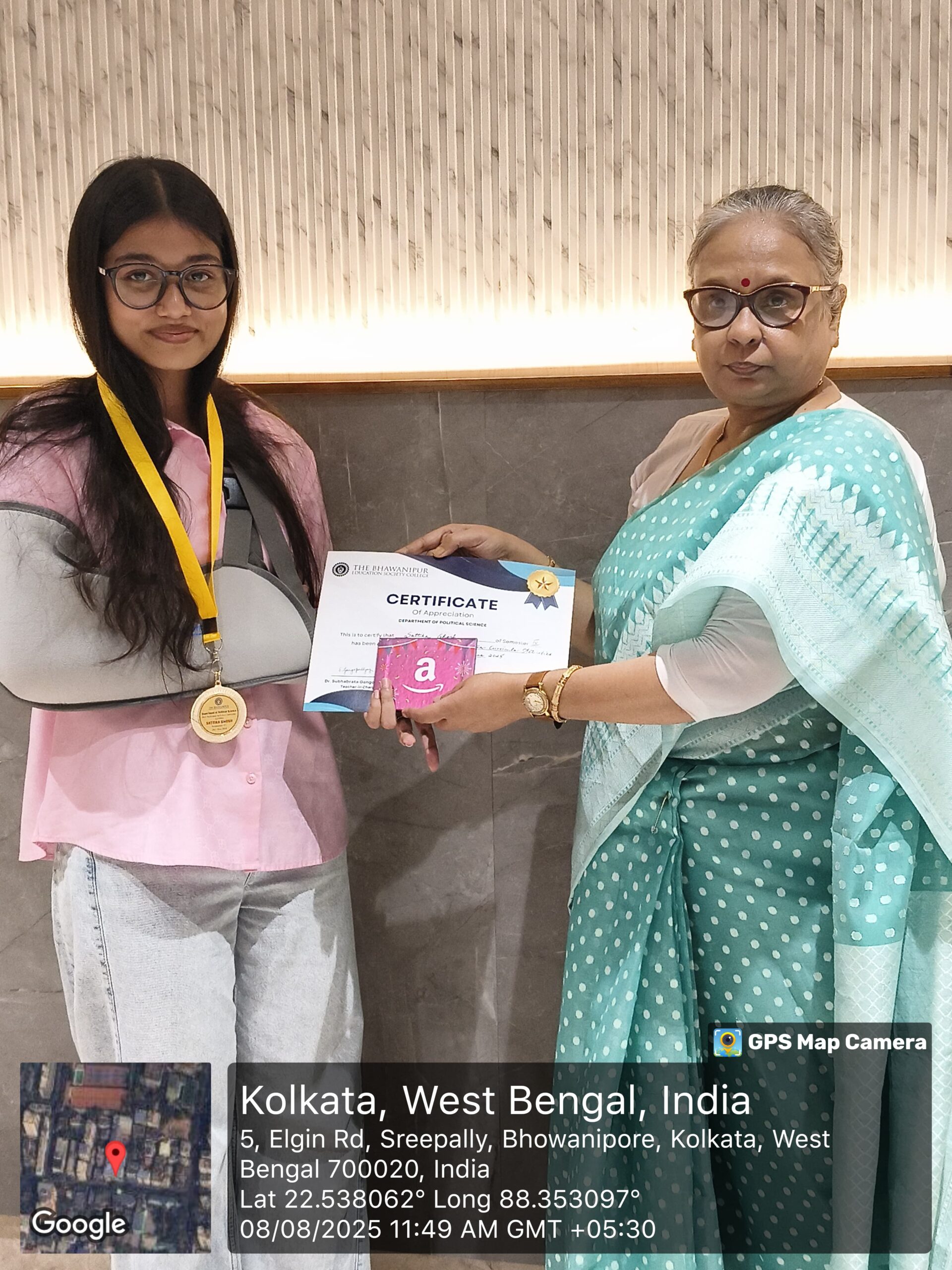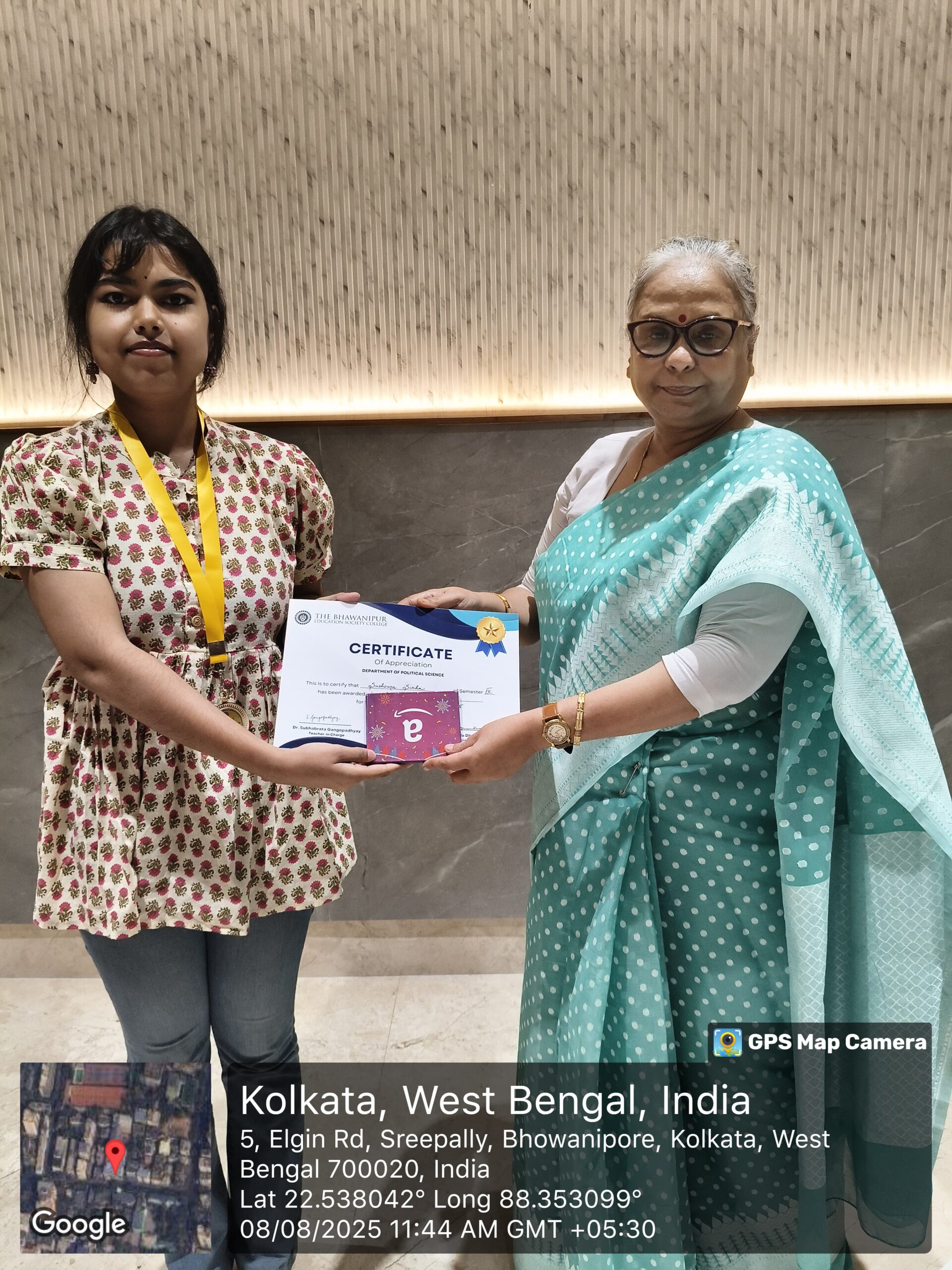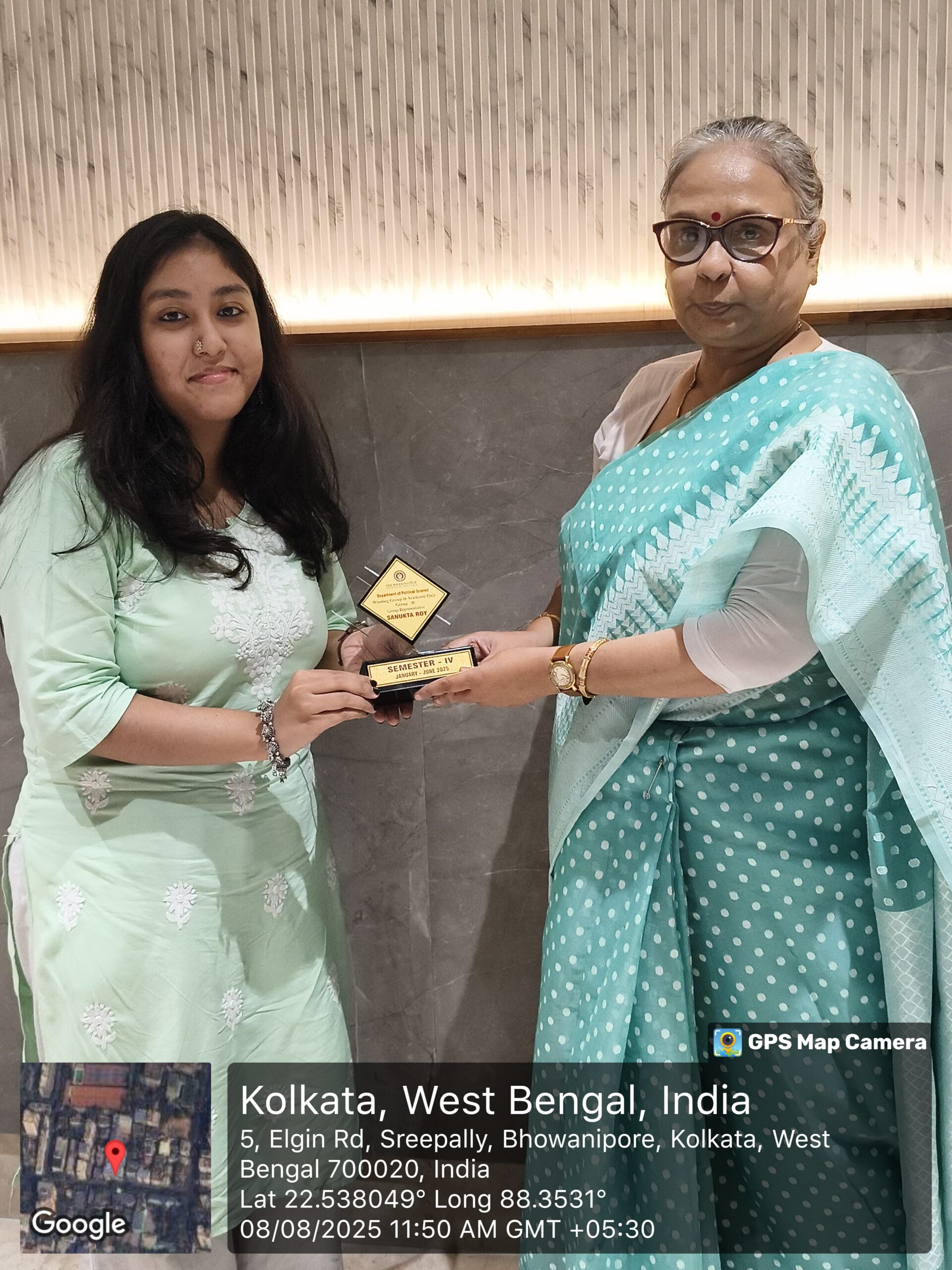 The prize for highest SGPA in Semester III University of Calcutta Examinations were given to Sanukta Roy and Riya Kumari Rao