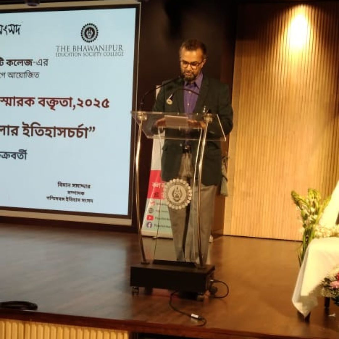 The Departments of Bengali and History, jointly with Paschim Banga Itihas Samsad, organised the 7th Sabyasachi Bhattacharya Memorial Lecture 2025 at the concept hall of The Bhawanipur Education Society College. Professor Bhaskar Chakraborty, former professor, Dept of History, Calcutta University, delivered the memorial lecture on “রবীন্দ্রনাথ ও সমকালীন বাংলার ইতিহাসচর্চা” (Rabindranath and the Historiography of Contemporary Bengal). In his lecture, he examined how Rabindranath Tagore’s writings and his ideas on nationalism, education, humanism, and rural reconstruction were closely connected to the historical developments of Bengal during the late nineteenth and early twentieth centuries. He discussed Tagore’s responses to colonial modernity, the Swadeshi movement, and broader cultural transitions, showing how Tagore both shaped and interpreted Bengal’s socio-historical consciousness.