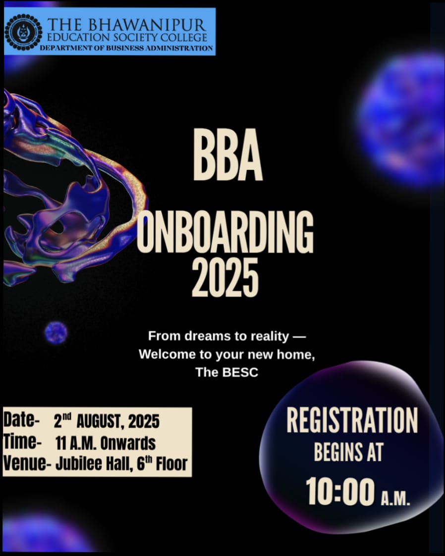 Transition from formal school life to college can prove to be a complete life-changing event. It is undoubtedly the most challenging part of every student’s life, and we all feel anxious and giddy with excitement at the same time. So, to help the students get acquainted and comfortable with college life, the Department of Business Administration of the Bhawanipur Education Society College conducted ONBOARDING 2025 for the 2025 – 2029 Batch on the 02nd of August 2025.