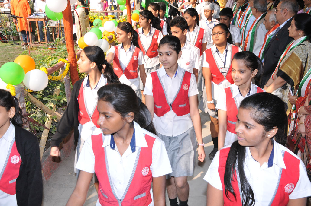 The entire college got together for the National Anthem which was followed by March Past by the ICSE school students.
