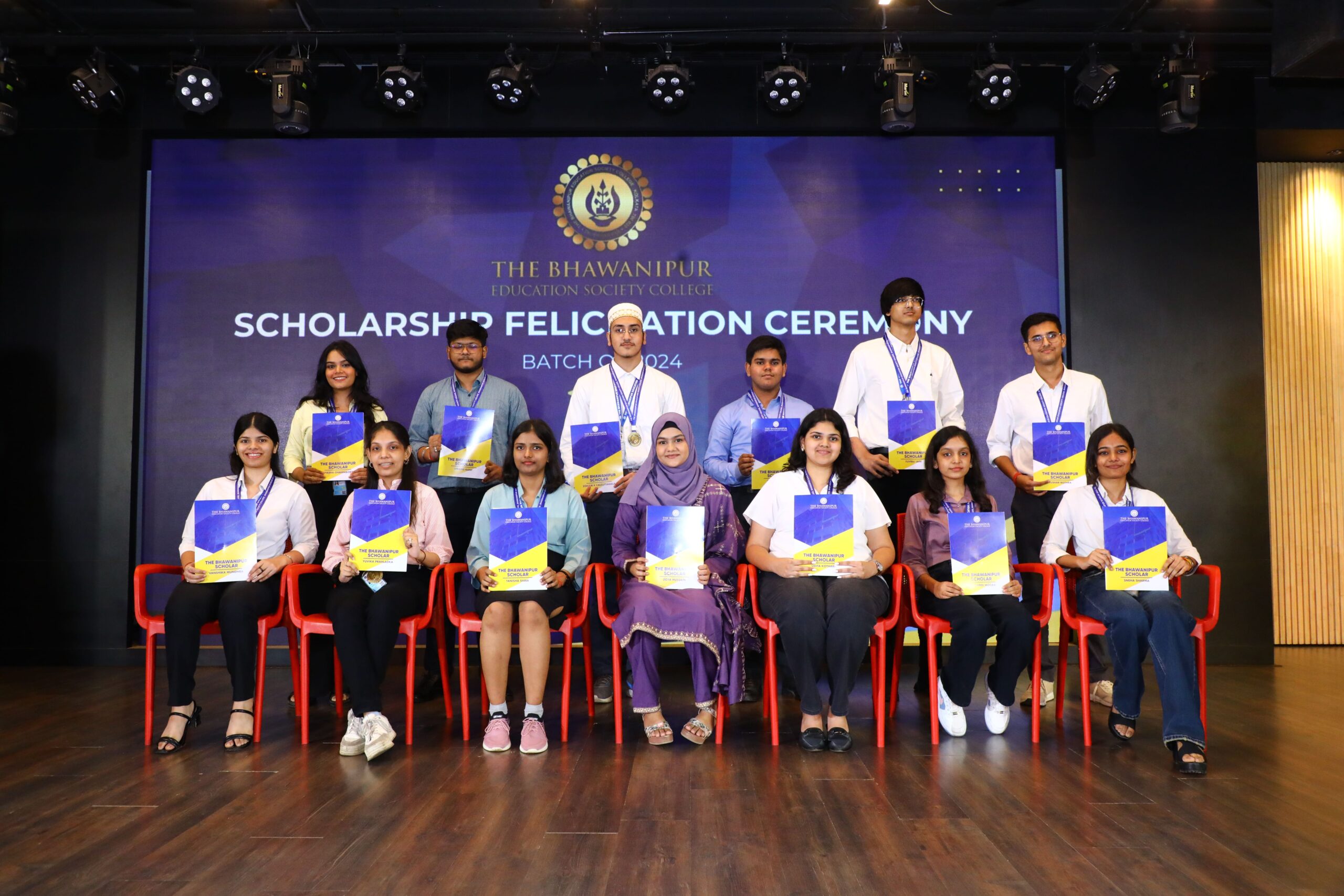 Scholars were felicitated by Sri Pradip Sheth, Sri Jogesh Shah, Sri Jitu Shah, and Sri Umesh Thacker, alongside Dr. Subhabrata Gangopadhyay, Teacher in-charge and Prof. Dilip Shah, Rector & Dean of Student Affairs. The event, anchored by Rajnandini, was flawlessly managed by a team of student volunteers.