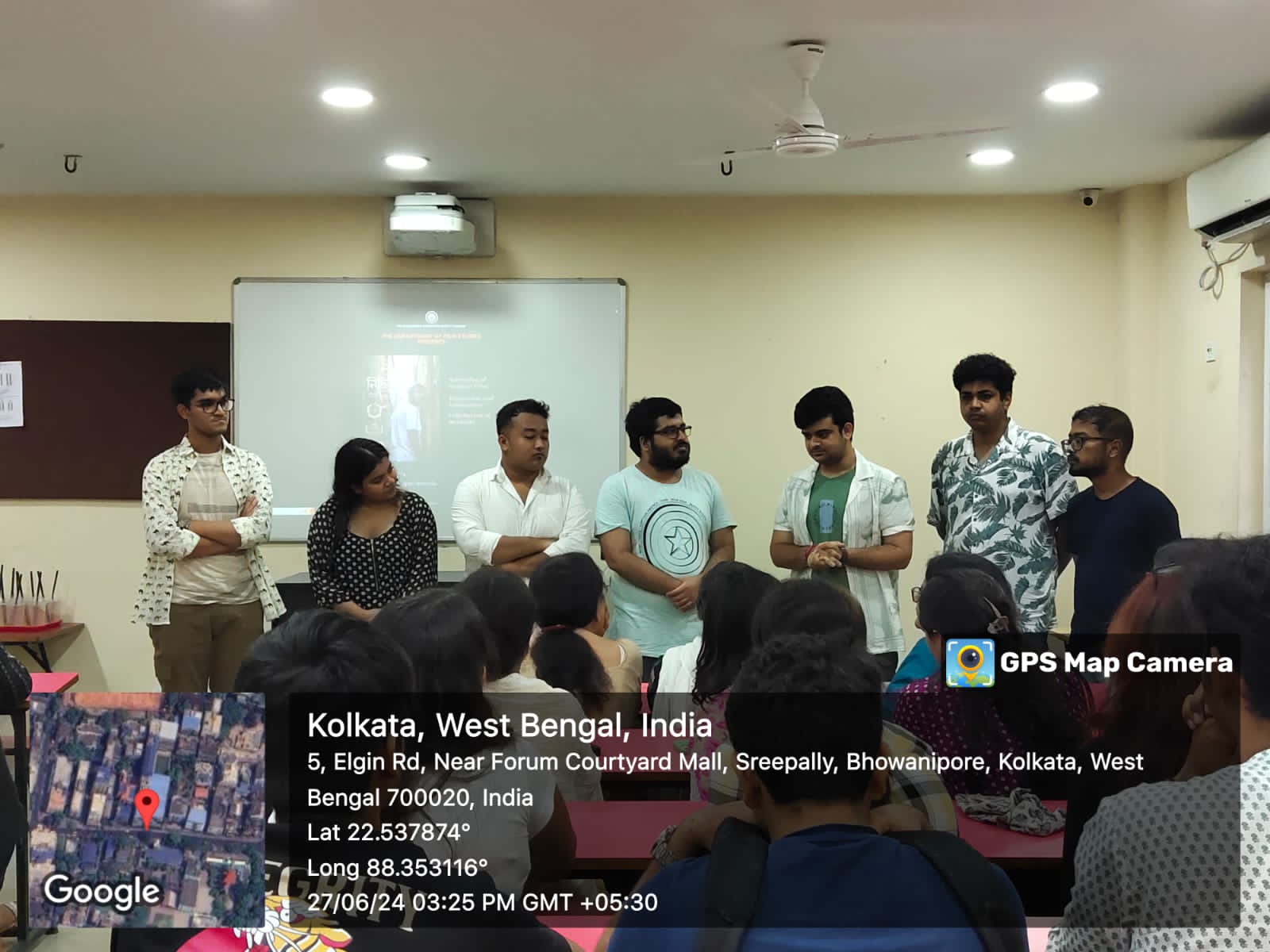 Type of Activity: Screening of student film followed by discussion and felicitation Date/Duration of Activity (from – to): On 27th June 2024 Time: 3:00 PM to 4:30 PM Details of Resource Person(s): Students of Film Studies Sem II, Felicitation by Vice Principal, Arts No. of Participants: 44