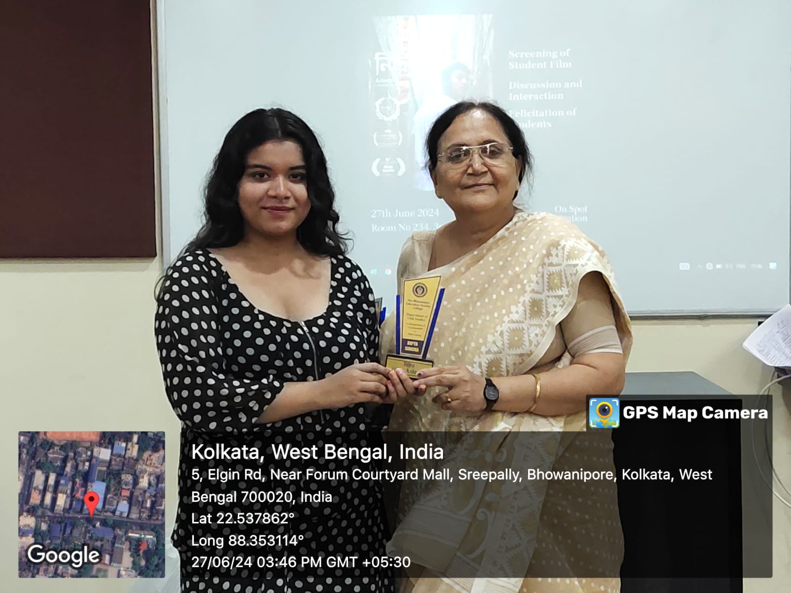 Objective of the Event: Screening a film made by a group of semester II as part of their practical exercise, which was later sent to and recognized by various film festivals, and to felicitate the students for their achievement