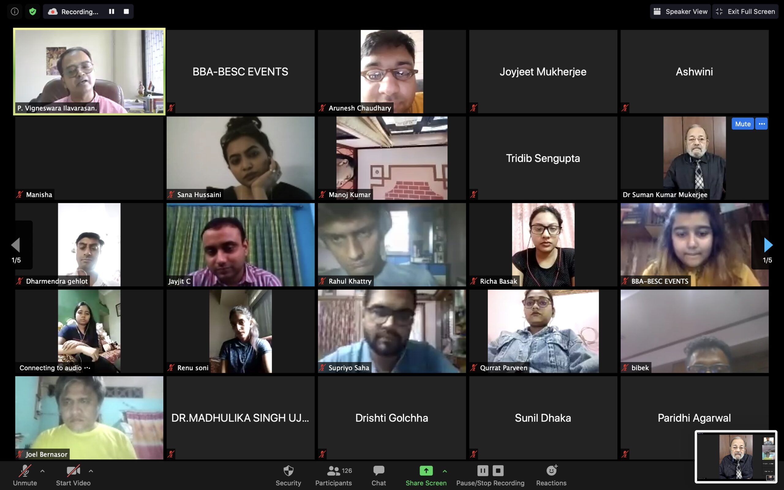 The webinar was commenced by the moderator Dr. Suman Kumar Mukerjee, Director General, The Bhawanipur Education Society College. He postulates that social media marketing is about creating content that brings one’s audience together as a community and inspiring authentic conversations while increasing one’s brand awareness. He believes that during such times of Covid-19 where people need to physically distance from each other, social media bridges the gap between customers and existing business enterprises. He was also an avid person to cross-examine the speakers and be a spokesperson for the enthusiastic audience members wanting to grasp all the speakers proficiency of the related topic.
