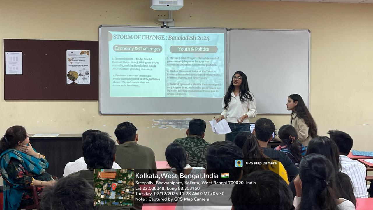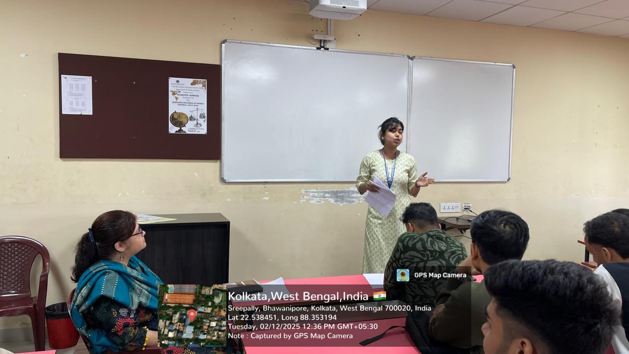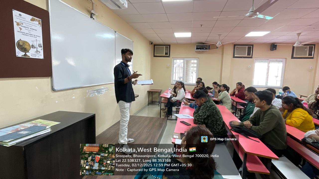Objective of the event: i. To understand the shifting global power structures and emerging trends in international relations, ii. to analyze the impact of globalization, technology, and economic interdependence on world politics, iii. to examine the role of emerging powers, non-state actors, and global governance institutions, iv. to discuss the implications of these changes for India’s foreign policy and global positioning and to foster critical thinking, research, and presentation skills among students on global issues
