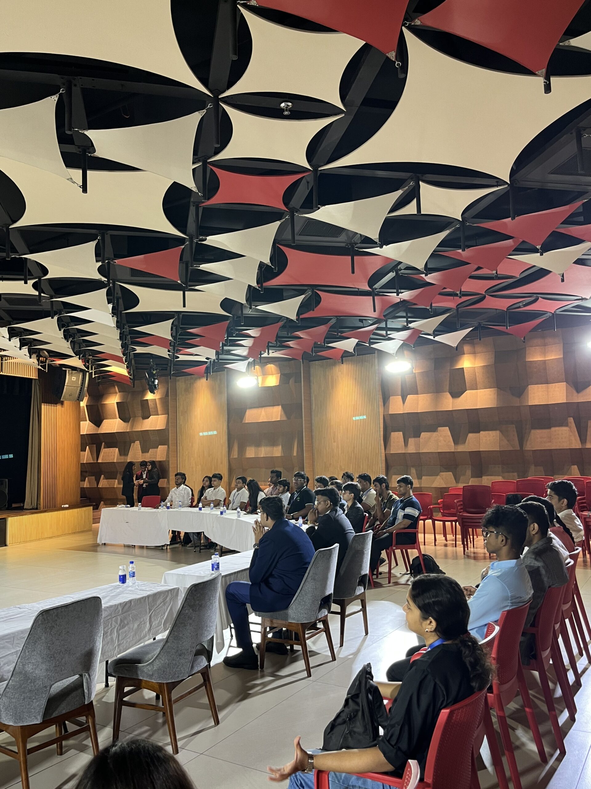 Mr. Agarwal emphasised the importance of investing in oneself during the early stages of college—exploring one’s skills and purpose while also valuing parents’ wisdom, staying dynamic, and starting networking and PR early. He highlighted mentorship as a key factor in an entrepreneur’s journey, describing mentors as individuals with greater experience and perspective who can help shorten the curve of mistakes. He added that mentors can come from various spheres—family, academia, or industry—and should be changed periodically as one grows and evolves.