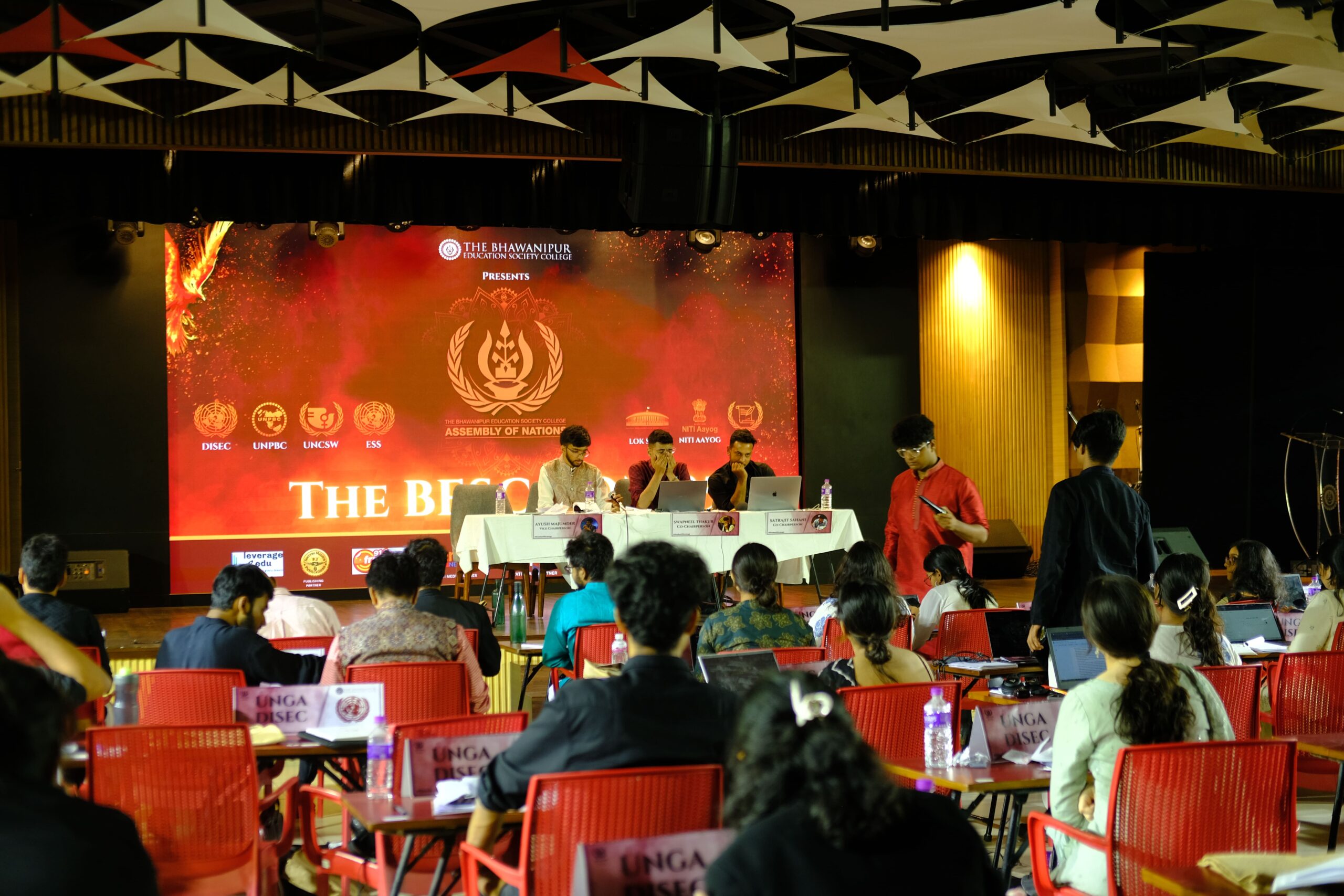 The Bhawanipur Education Society College hosted the 8th edition of one of Eastern India’s leading Model United Nations (MUN) conferences of the BESC Assembly of Nations (AON), from the 24th to 27th April 2025, on its campus grounds. AON 2025 welcomed student participants from across the country for four days of impactful debate, diplomacy, and dialogue. With each delegate equipped with essential materials in eco-friendly jute file cases and fueled by energy drinks and refreshments, the event delivered an immersive experience over four enriching days. The theme, “#ShadesOfStrategy”, urged the youth minds to engage in current affairs, voice their perspectives, and contribute to global peacebuilding through structured deliberations. Many participants coveted the prize pool of BESC AON 2025, which had a total sum of INR 2,45,000/-.