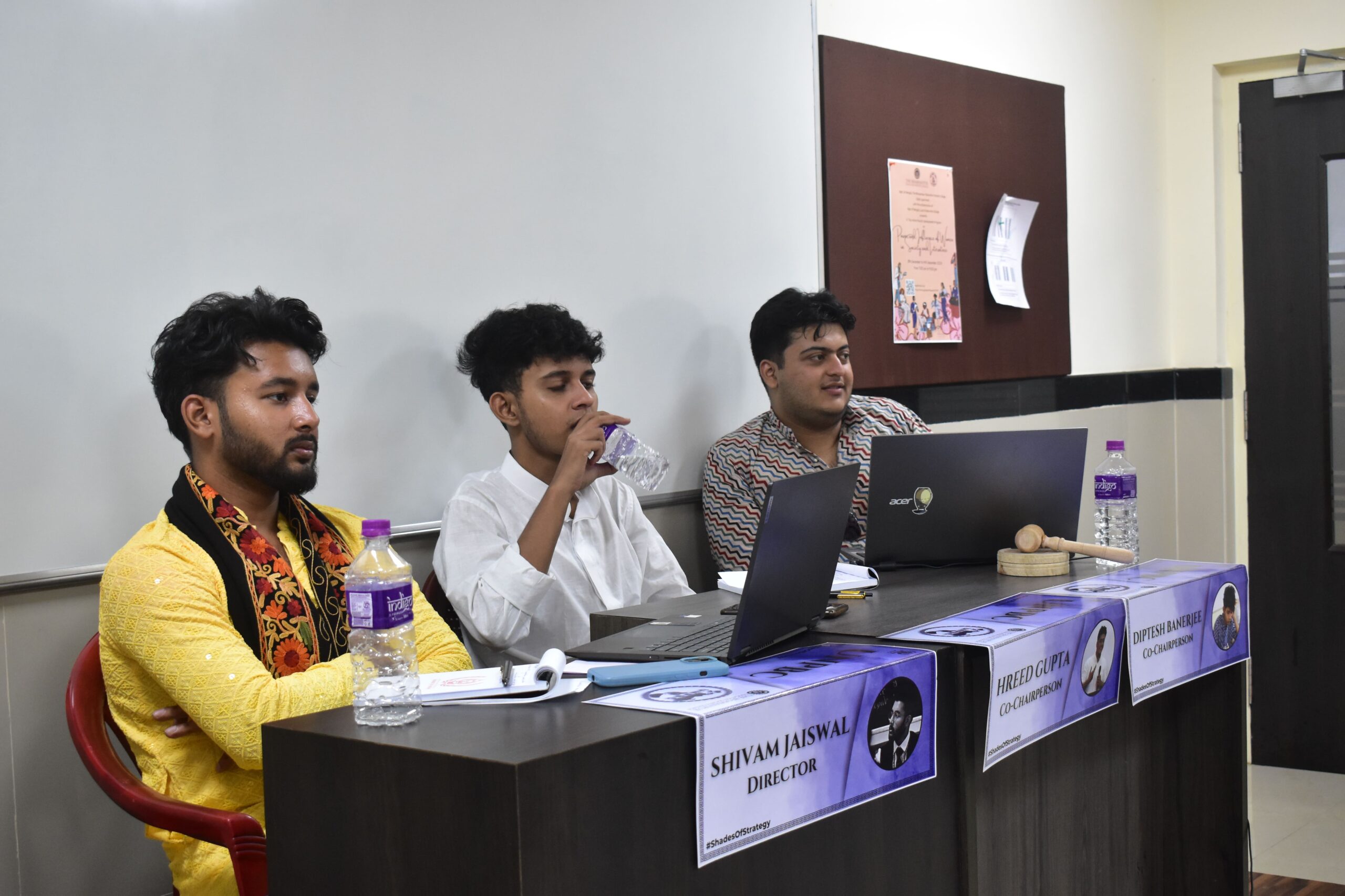 Replicating the Indian parliamentary setup with an impressive degree of realism, the Lok Sabha committee, moderated by Speaker Mr. Shivansh Srivastava, Deputy Speaker Sanyam Jha, and Scribe Chetana Mondal; deliberated on Centre-State dynamics and policy on deep-sea bed mining. The chit-based questioning added a dynamic edge, with delegates responding under strict time limits. Comprehensive policy documents were also submitted. The winning titles were handed to delegates who acted as the following politicians –