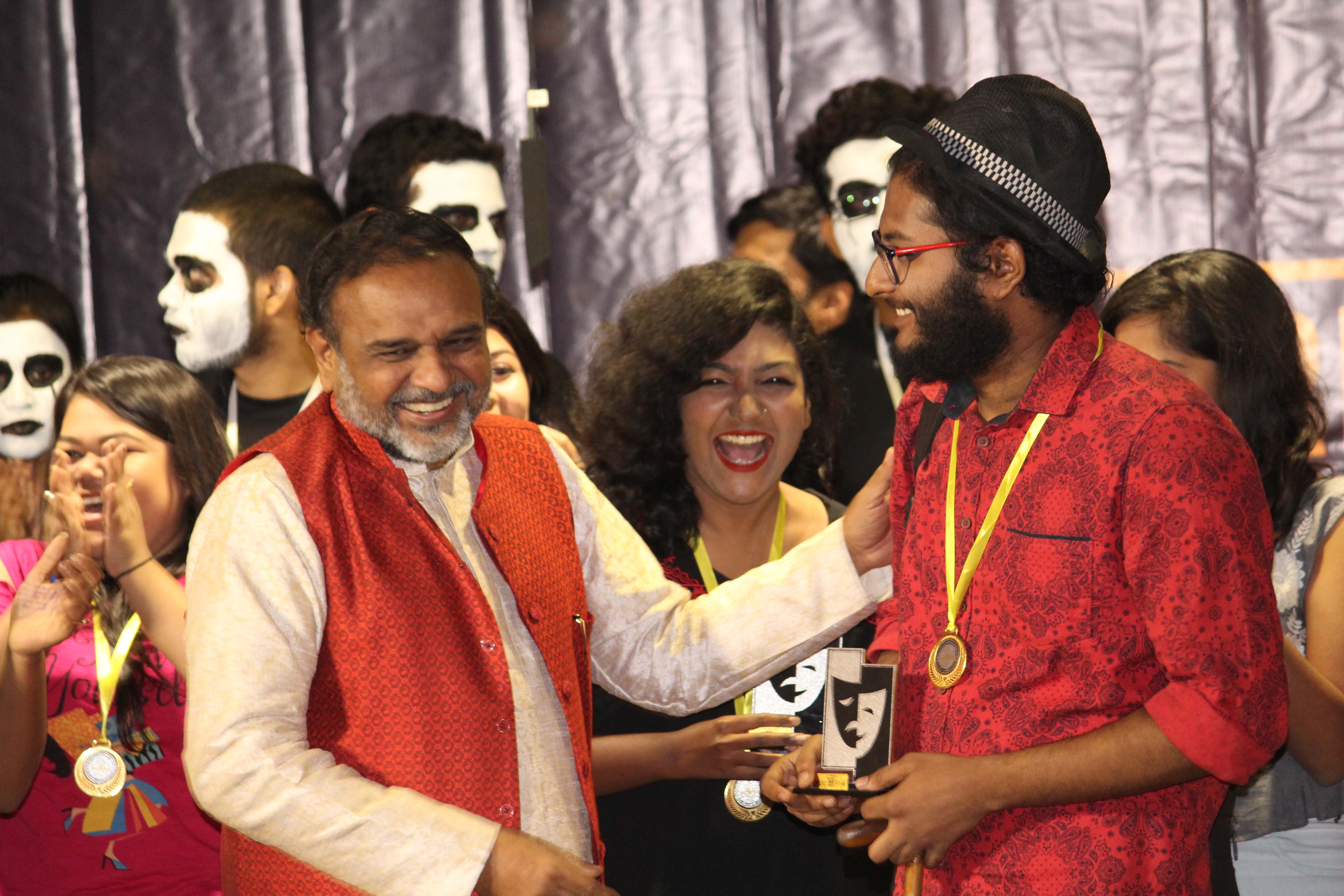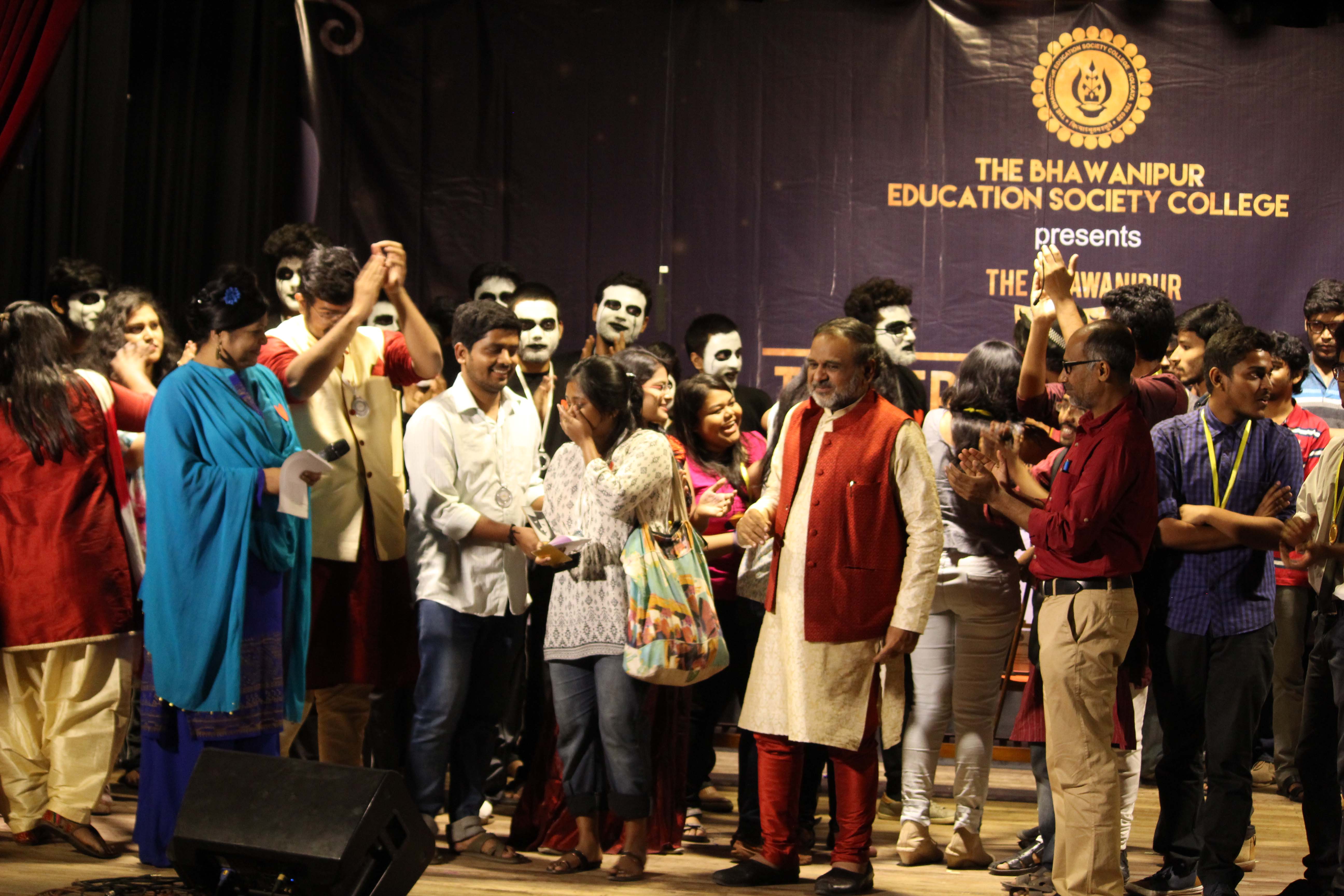 BESC emerged as the glorious over all winners of the Theatre Festival followed up by JDBI and Presidency University as the First Runner ups.The Faculty members and The Dean of Student Affairs– Prof. Dilip Shah rendered immense support and guidance all throughout .The team work and efforts of the Directors – Argha Banerjee ,Rajarshi Mitra,Shashank Agarwal ,Umang Sharma & Heads –Anushriya,Darshdeep Singhwalia, Navneet Dugar, Nishant Lahoti,Vidhi Hakim brought forth an immense success to this.