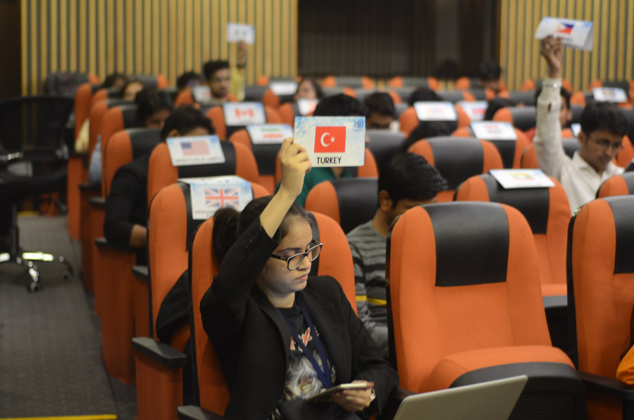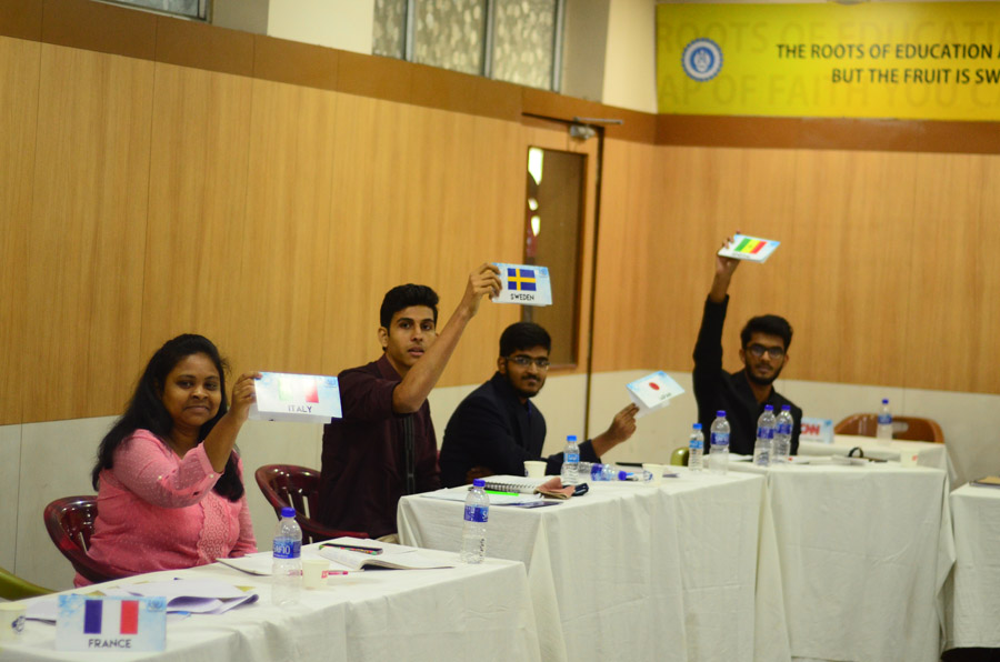 Over the next three days, students were exposed to spirited debates of intellectually stimulating content as members representing their respective Nation’s concerns elicited support and action in the three forums – the UN General assembly, The Security Council and the Rajya Sabha. The proceedings were conducted in strict accordance with an agenda that was prefixed and as per the established protocols of the committee. This was brought about by the painstaking work put in by the students for over a month preceding the actual conference.