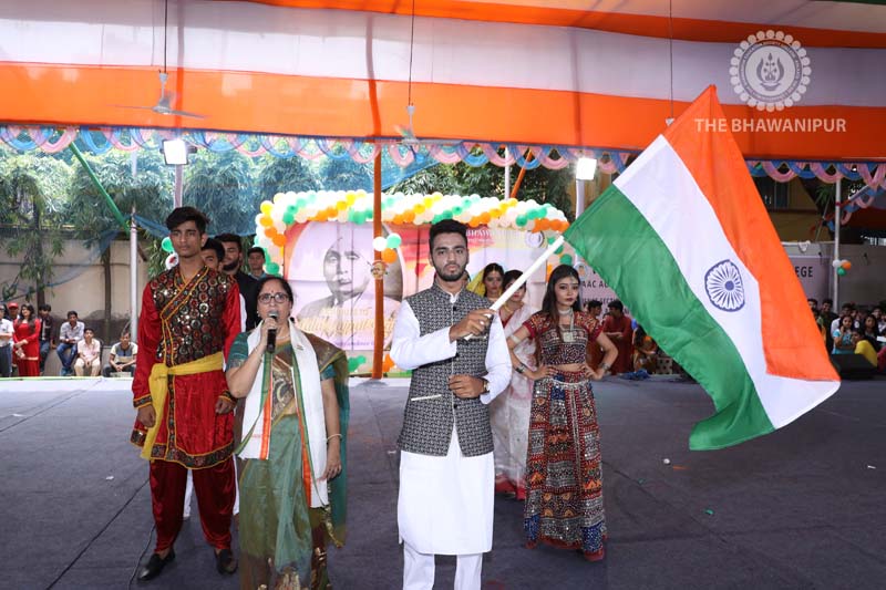 The Tricolour was unfurled with full solemnity and was followed by a march past in which students of the Bhawanipur School and the NCC unit of the college took part. This was followed by a rousing speech by Prof Suman Mukherjee, The Director General of the College, wherein spelt out the true meaning of freedom, the untold sacrifices of our forefathers with which it was won and urged the young to take the vow to guard it to their last breath.