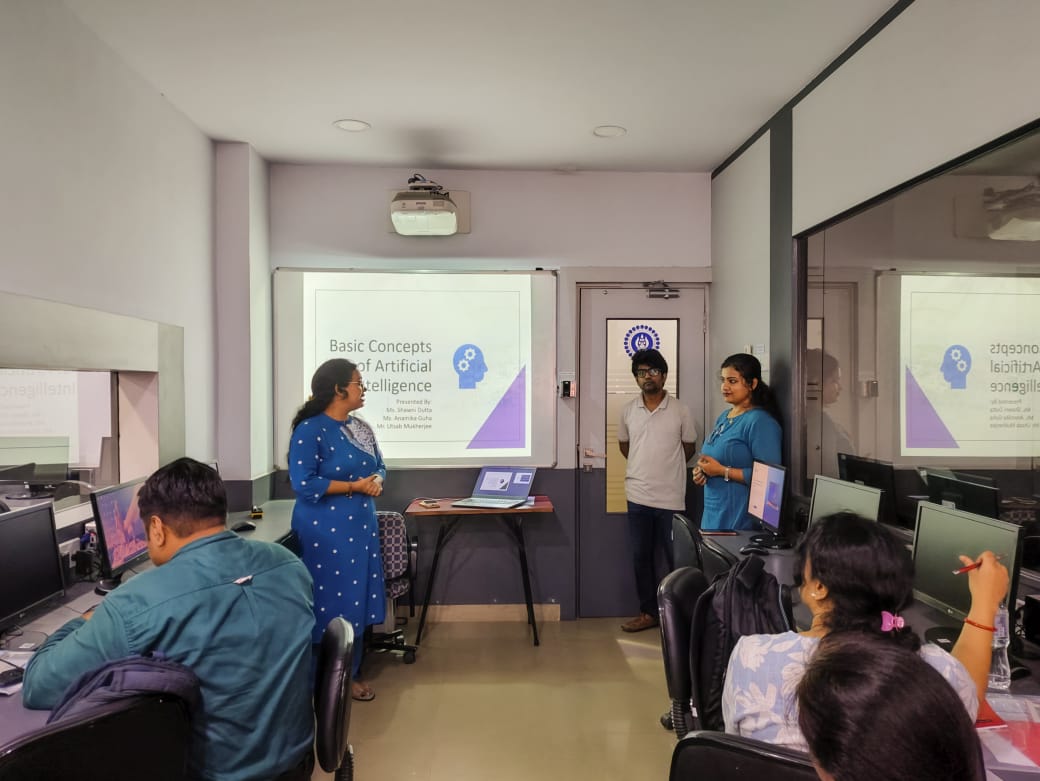 The Department of Computer Science successfully conducted a 30-hour Faculty Development Programme (FDP) titled “Empower Your Teaching with Artificial Intelligence” from May 20 to May 24, 2025. The programme was specially designed for ISC school teachers across Kolkata. The sessions included detailed modules on the basics of Artificial Intelligence, introduction to Natural Language Processing, and foundational Python programming with practical demonstrations. All eleven participants actively engaged in interactive activities and assessments. The resource persons ensured that concepts were delivered in an accessible and applicable manner.