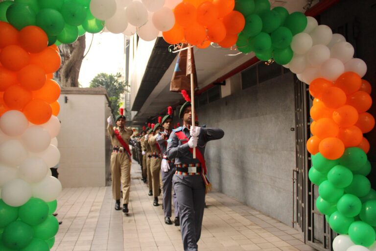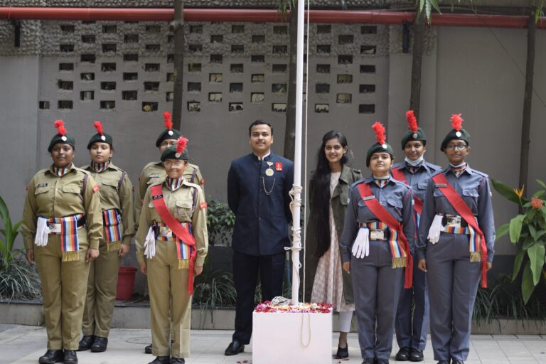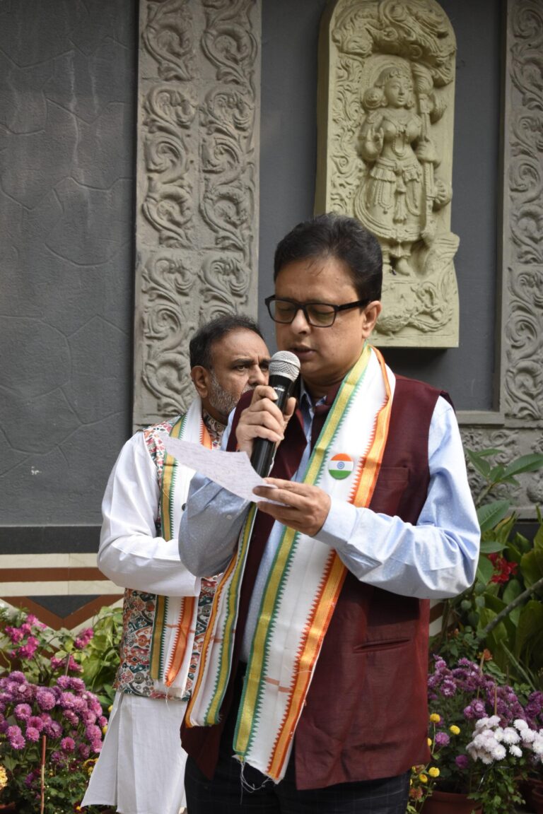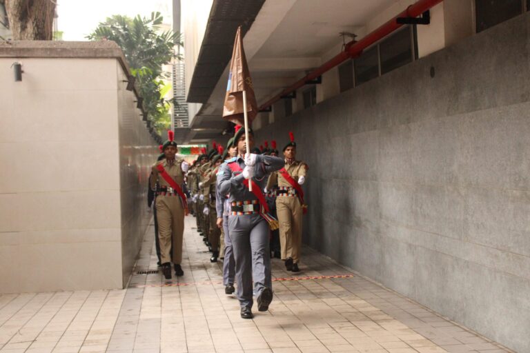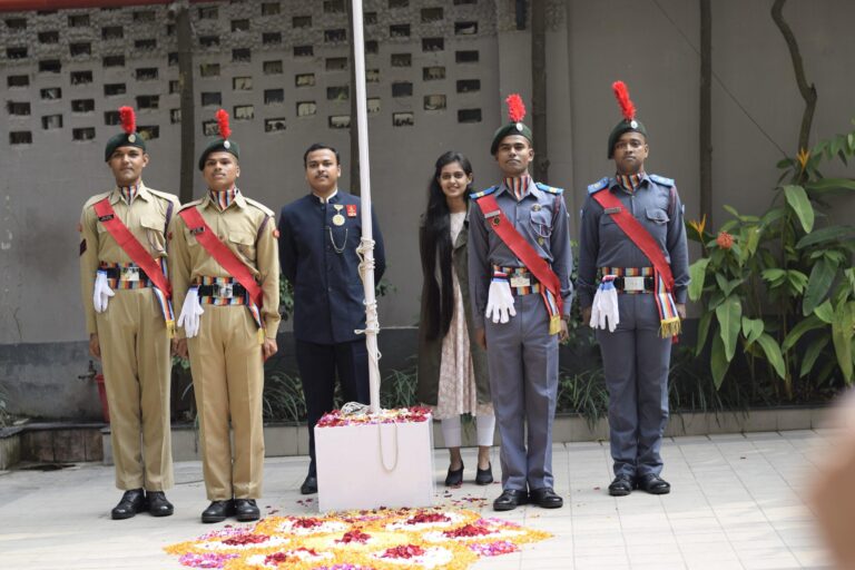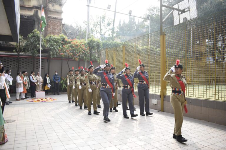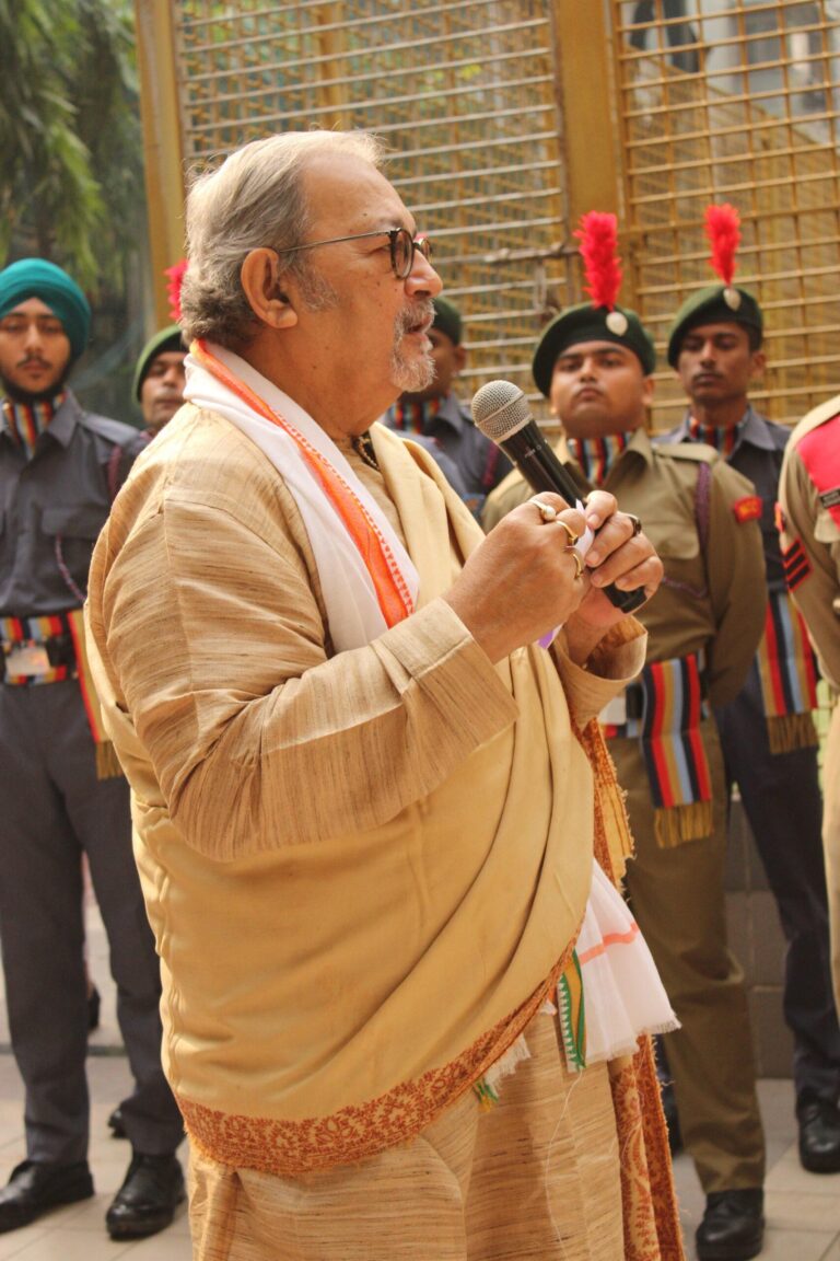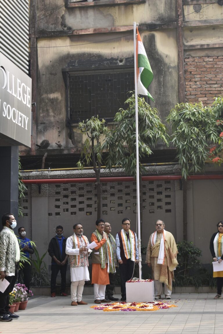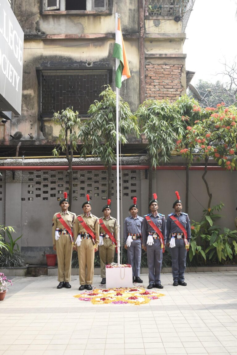 After this, the representatives of the College management, Sri Jeetu Shah, and Sri. Umesh Thakkar, Teacher in-Charge, Dr. Subhabrata Ganguly, hoisted the national flag with round of applauses and salutes following which NCC cadets of the college showcased a march past with great energy and high spirit. Everyone then stood up to sing the national anthem of the country, Jana Gana Mana.